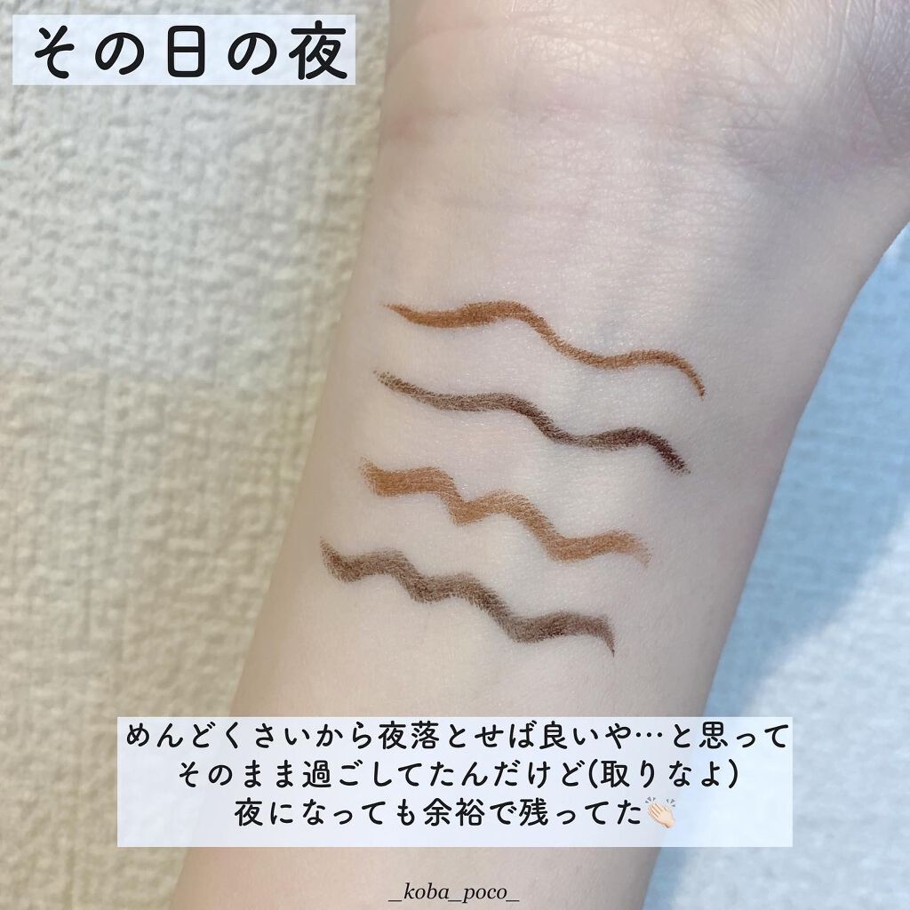 新色のアズキブラウンと限定のマッチャカーキ、今更ゲットしました😮💨💕 するするっとした書き心地は健在です。ゴシゴシこすっても落ちにくい💪🏻💫 やっぱり大好きならアイライナーでした😉❤︎