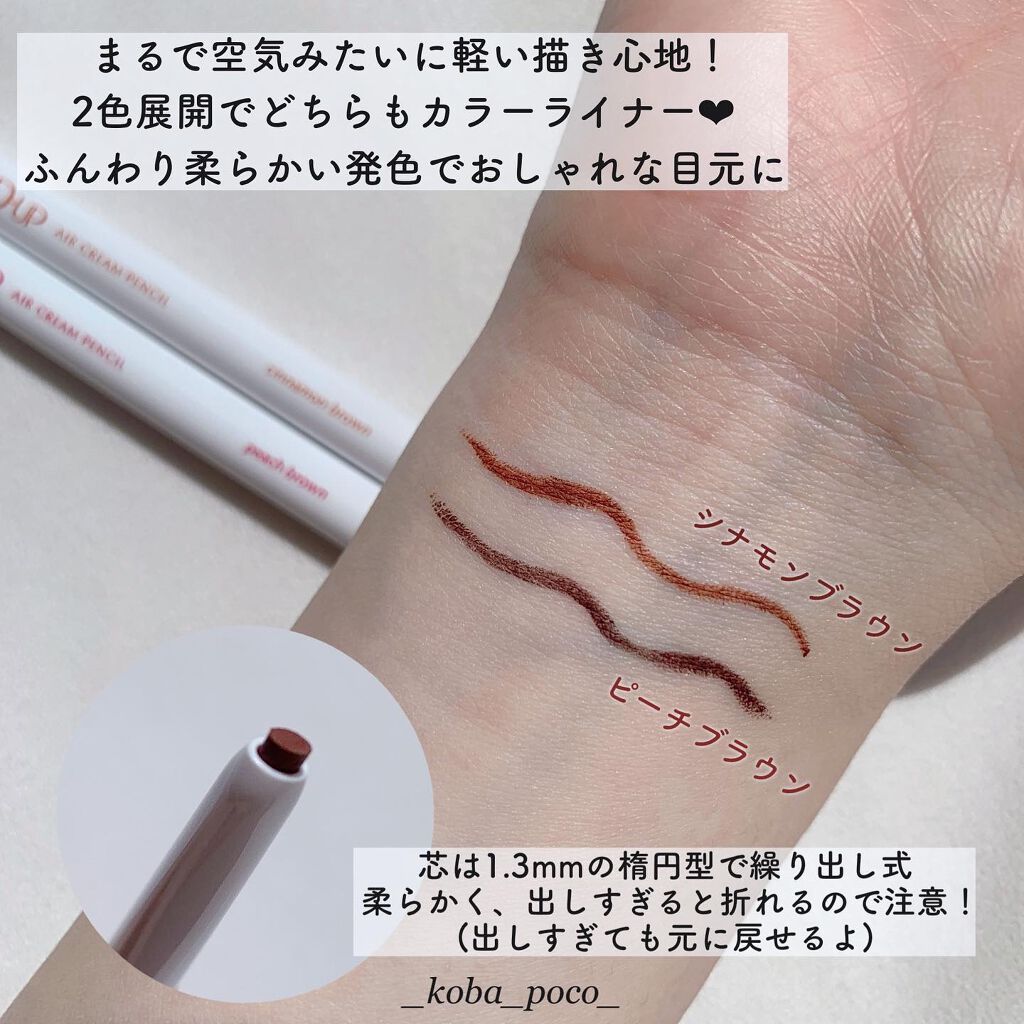 ディーアップパーフェクトエクステンションマスカラ 美容家神崎恵さんプロデュースのピュアブラウン🤎 コンパクトなブラシが使いやすくてとにかく軽く、仕上がりが綺麗なんだよね💓 自まつ毛が伸びたってくらい自然な色馴染み✨ まさに繊細ロング💗 綺麗なくるんとしたCカールをキープ☺️💓 ディーアップエアクリームペンシル 最近ハマってるペンシルライナー💓 カラーはピーチブラウン🍑🤎 ふんわりした優しいブラウンでマスカラのピュアブラウンとバッチリの組み合わせだった❤️