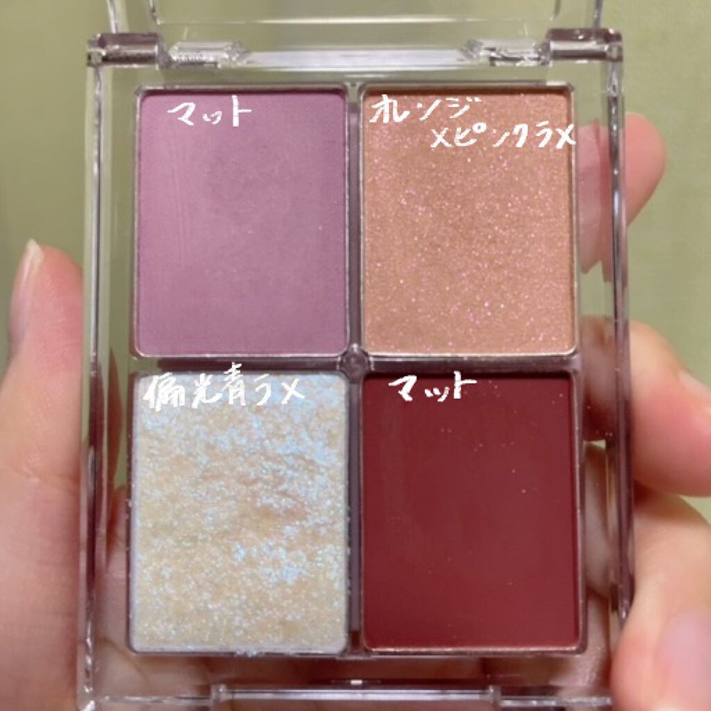 - ★オンオフ問わずマルチに活躍「4色アイシャドウ」 これ一つあれば誰でも簡単に旬の目元になれる、トレンド感のあるニュアンスカラーが4色入ったアイシャドウパレット。4色のつけ方を変えるだけで、何通りもの印象の異なるメイクを楽しむことができます。
