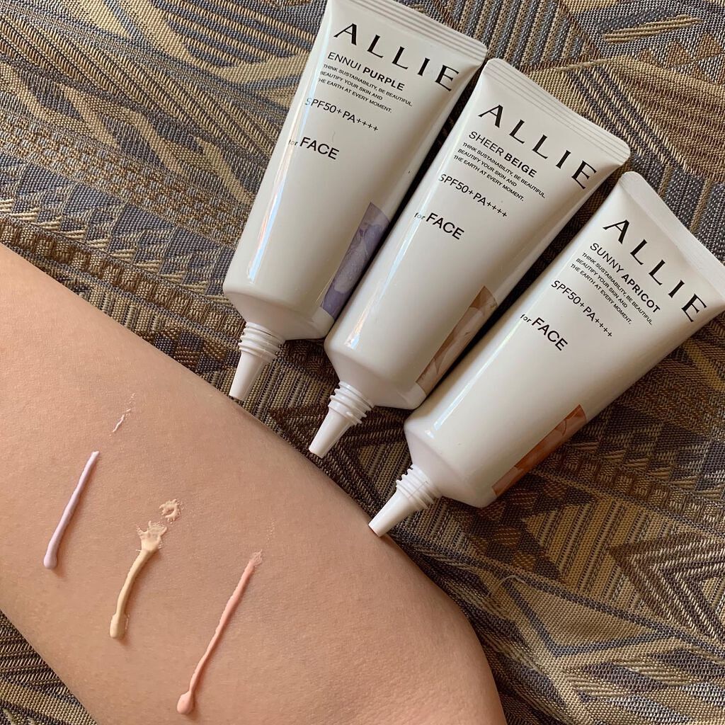 - 世界を想う 美しさつづく*1 日やけ止め おでかけも、マスクを外す機会も増える毎日に。 一部の国・地域・ビーチの規制に配慮した設計のビーチフレンドリー処方。 これ 1 本で、UV カット&顔色補整効果でクマ・くすみ・色ムラまでカバー! テカりにくく、くずれにくいノーファンデ UV*2 【ENNUI PURPLE】 くすみや毛穴をカバー 儚げな透明感のある顔印象続く 澄んだ気分を誘う 紫陽花しずく&セージの香り 【SUNNY APRICOT】 クマや毛穴をカバー いきいきとした血色感のある顔印象つづく 思わず出かけたくなる アプリコット&金木犀の香り 【SHERR BEIGE】 色ムラや毛穴をカバー 均一で抜け感のある顔印象つづく 自然で飾らない シトラスウッディ&パチュリの香り ●一部の国・地域・ビーチの規制に配慮した設計の「ビーチフレンドリー処方」 ●SPF50+・PA++++ ●汗・水 こすれに強く落ちにくい フリクションプルーフ・スーパーウォータープルーフ ●ベタつきにくい感触がつづく ●テカりにくくキレイな肌仕上がりがつづく ●環境に配慮した素材を使用したパッケージ採用 ●美容液成分(保湿)ヒアルロン酸Na配合 ●顔用 ●普段のメイククレンジングで落とせる ●マスク・タオル等につきにくい ●化粧下地効果 *1 スキンケア効果またはメイクアップ効果による肌仕上がりのこと *2 ファンデーション未使用時でも、自然なベースメイクが仕上がる日やけ止めのこと *3 チリ・ほこり・PM2.5・花粉等すべての微粒子汚れの付着を防ぐわけではありません 01:ENNUI PURPLE パープル 02:SUNNY APRICOT アプリコットピンク 03:SHEER BEIGE ミルキーベージュ