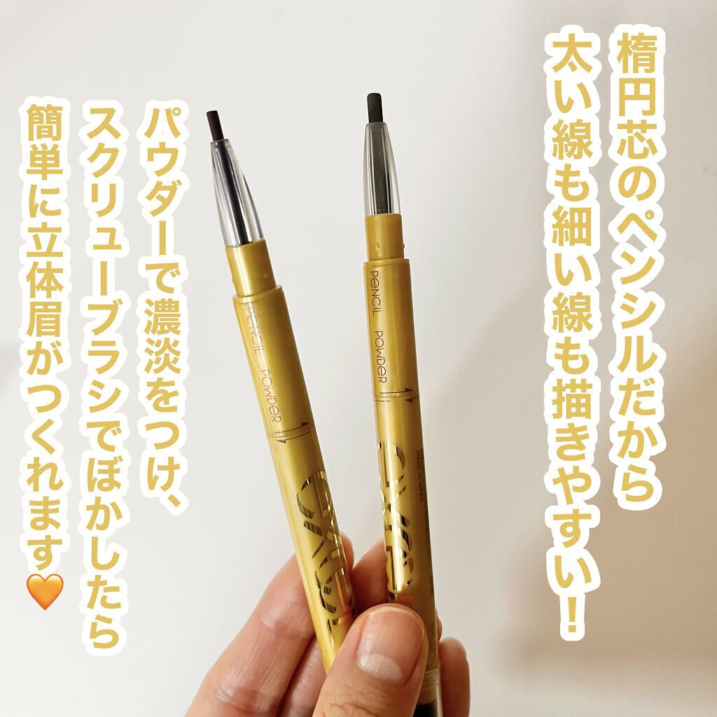 - 髪色・瞳色、ファッションに合わせて選べるベーシックからトレンドカラーまで豊富な10色展開。 簡単、美人眉。1本でパウダー・ペンシル・アイブロウ3つの機能。 描きやすいペンシルとパール感のあるふんわりパウダーで、ぼかしの効いた美人眉が簡単に描けます。 3 in 1 3つの機能をスマート搭載。3ステップで簡単にアイブロウメイク。 1隙間埋めや繊細なラインも描きやすい楕円芯のペンシル 2濃淡がつけやすく、フィット感もさらにアップしたパウダー 3やわらかタッチの立体スクリューブラシ アイブロウ人気No.1 ※エクセル商品の中で