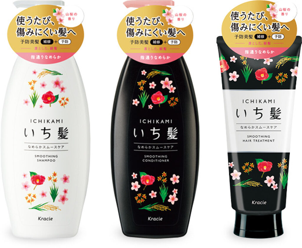 いち髪 なめらかスムースケア シャンプー480ml コンディショナー480g久しぶりのいち髪!!セットで800〜900円くらいでした😳1週間ちょい使った感想です。シャンプーはみずみずしく可憐な山桜 三分咲きの香り🌸泡立ちは普通かな🫧流すと髪が...
