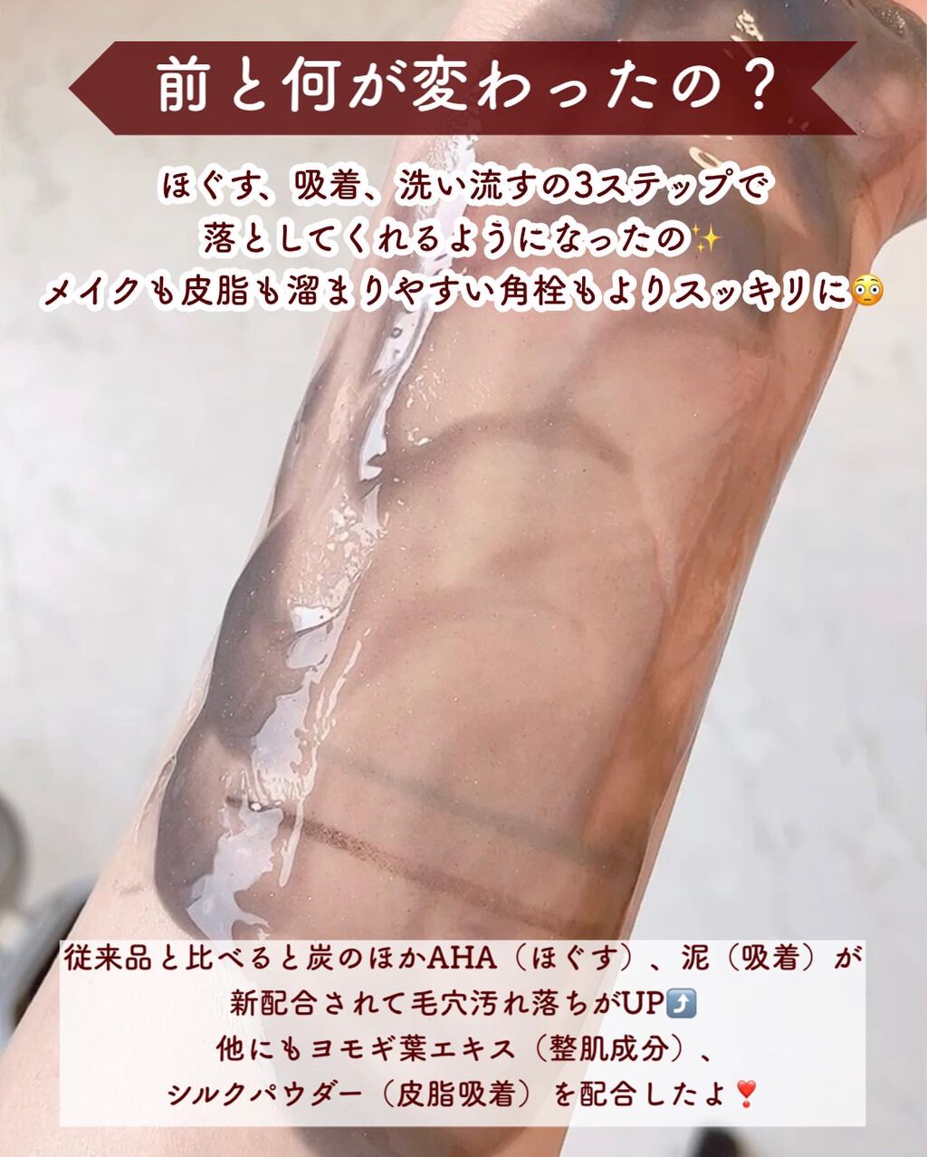 - 炭*1×W酵素*2で、黒ずみ毛穴※1が気になる肌を土台※2から整えるクレンジングトーニングバーム。 炭*1でメイク汚れや皮脂を吸着し、角栓を分解するダブルの酵素の力で古い角質の蓄積汚れまですっきりオフ。※3 さらに皮脂トラブルや角質がたまる仕組みに着目し、アゼライン酸*3やビタミンC*4などを配合。毛穴の目立ちにくい、つるっとなめらかな素肌へ整えます。 厚みのあるバームが肌への摩擦を軽減。肌へやわらかく密着し、メイク汚れを包み込んで洗い流します。 乳化スピードがUP※4してすすぎやすく、洗い残しを防ぎます。 (※1 古い角質による ※2 角質層のこと ※3 炭、W酵素配合のバームで洗浄すること ※4 当社従来品比 *1 皮膚コンディショニング成分 *2 皮膚コンディショニング成分 プロテアーゼ、リパーゼ *3 整肌成分 *4 肌をひきしめる成分 テトラヘキシルデカン酸アスコルビル)