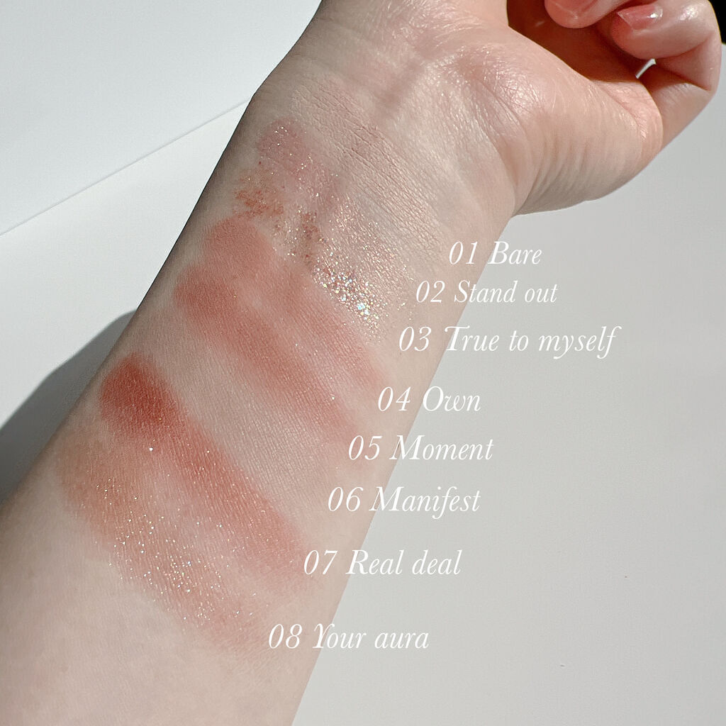 オブジェリキッドは『記憶と感情という抽象的概念をそれぞれのカラーで実現し、しわくちゃになったオブジェの中に収めた作品』となっています。(公式サイト引用) ヴィーガンベース ブラーリングゲルが唇の凹凸を埋めながらフィルターをかけたような軽い仕上がり ほのかなシグネチャーグリーナリーの香り カラーは全10色。2.3.5.7.8(?)はニュートラルっぽいカラーで、1.6.10はやや黄みより。4.9はやや青みよりのカラーのような感じでした。(個人的にみて) 質感はベルベットマット。ふんわりとした仕上がりでありつつもパサつきにくいリップです🌿 アプリケーターを使う時、キシキシとした音が鳴り、アプリケーターとキャップの接合部分にやや不安を感じたので力の強さに気をつけた方が良いかと思います🤔