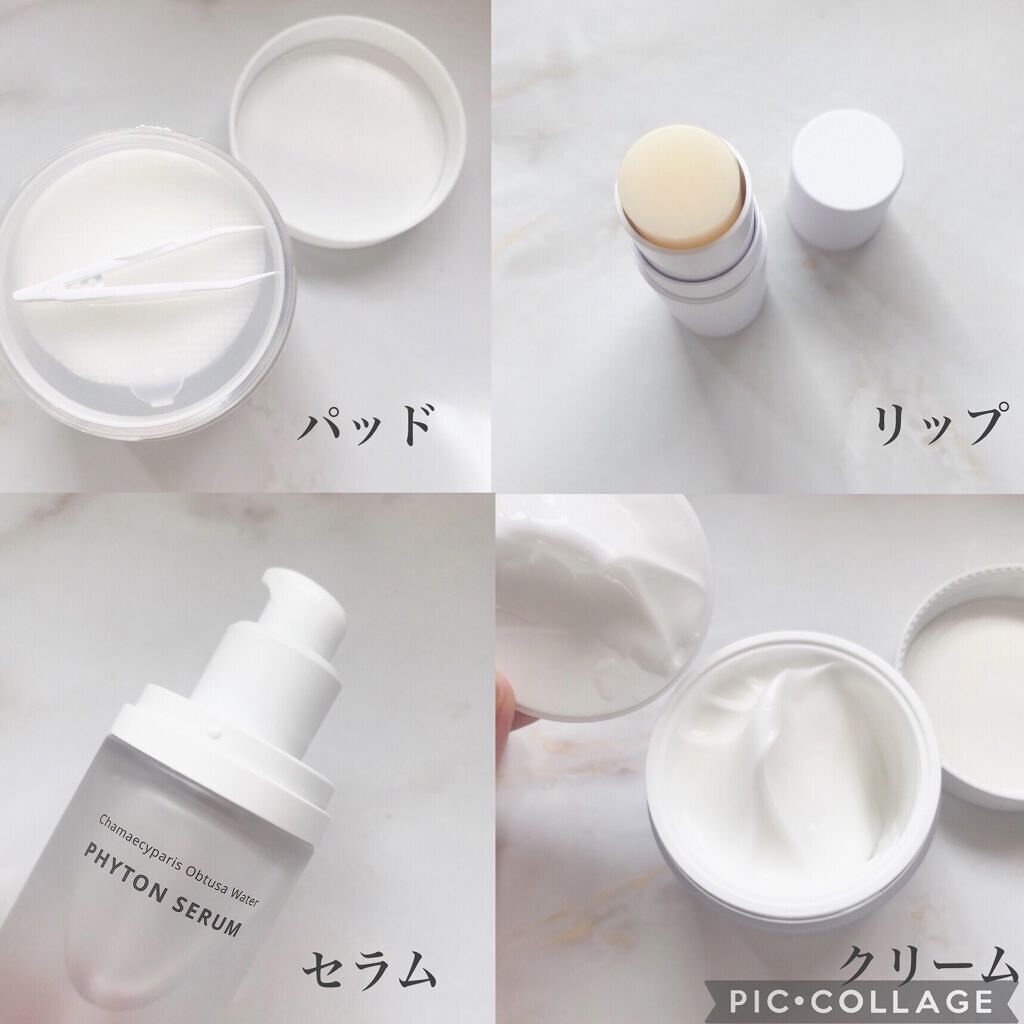 ヴィーガン100%でお肌が弱い方でも安心して使うことができる🥰🥰 ファイトントナーパッド 170ml 生分解ガーゼ生地 敏感肌の方でもお使いいただけます ヒノキ水90%以上配合 ファイトンリップバーム 7g 動物由来成分(beeswax)無添加 ヒノキ油、植物由来成分配合 栄養たっぷりでしっとりした保湿感 唇に溶け込むように密着し、ベタつきなく自然になじむ ファイトンセラム 100ml 6種類のブルーハーブの水分で肌を健やかに保つ(弾力不足,皮膚の乾燥を防ぐ) ヒノキ水88%以上配合 ファイトンクリーム 100ml マカデミア種子油100,000ppm 配合 ヒノキ水66%以上配合 ベタつきや浮いた感じがなく、素早くなじみやすく肌の水分チャージが可能