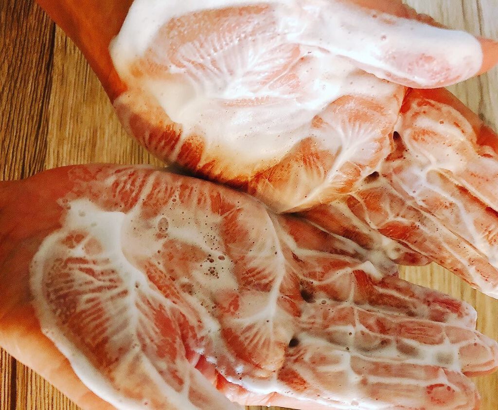 - 水、PEG-8、グリセリン、ラウレス硫酸Na、LPG、ココイルグルタミン酸TEA、ステアリン酸グリセリル(SE)、ラウリルベタイン、コミカドDEA、二酸化炭素、ポリクオタニウム‐10、ヒドロキシプロピルトリモニウム加水分解ケラチン(羊毛)、加水分解ケラチン(カシミヤヤギ)、加水分解シルク、オプンチアフィクインジカ茎エキス、ホホバ種子油、シア脂、スクワラン、海シルト、シロキクラゲ多糖体、加水分解コンキオリン、クラドシホンノバエカレドニアエエキス、ペンチレングリコール、ノイバラ果実エキス、プラセンタエキス、アーチチョーク葉エキス、ユズ果実エキス、BG、クエン酸、エチルヘキシルグリセリン、カプリルヒドロキサム酸、ラウラミノプロピオン酸Na、ポリアクリル酸Na、メチルプロパンジオール、フェノキシエタノール、トコフェロール、香料