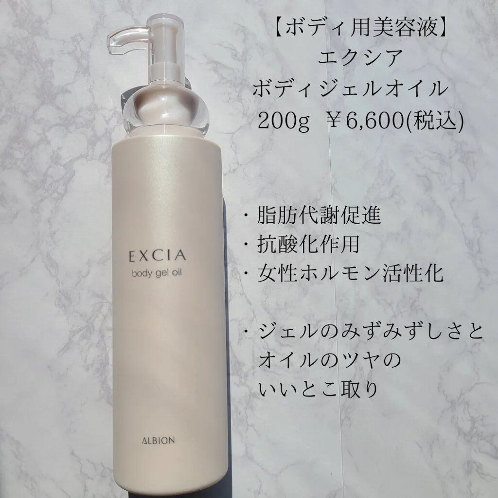 贅沢やと思いながら買ってるALBION エクシアのボディジェルオイル🥺 一回使ったらほんまにやめられんくなってしまった🤦 これはジェルのみずみずしいベタつかない感触と、オイルのムチッとツヤ肌にしてくれる質感との両立💡 お高いけど…ほんまに一回試してみて皆さんの感想も聞きたい🥺