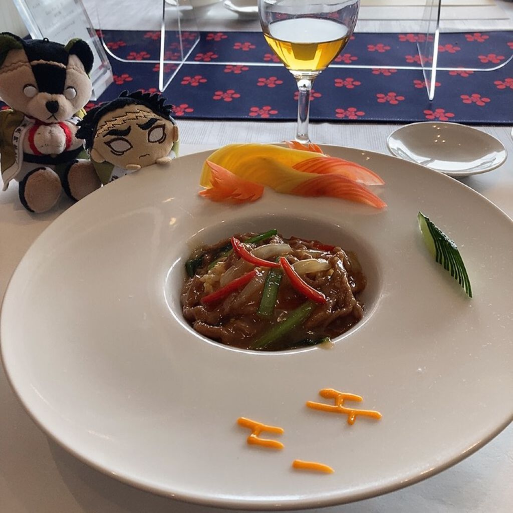 #雑談 明け方なので😊😆 これからフロマージュの杜タルト 食べます🥧🍴🤤 こないだ ホテルニューオータニ大阪でやってる 鬼滅の刃 鬼の来ないレストランに行ったので みせびらかします。 もっと撮影したかったので また行くかもしれん🤗 このように カロリー度外視で生きています。 見た目は基本的にそこまで気にしないけど🥴 血液検査の数値が気になるお年頃であります