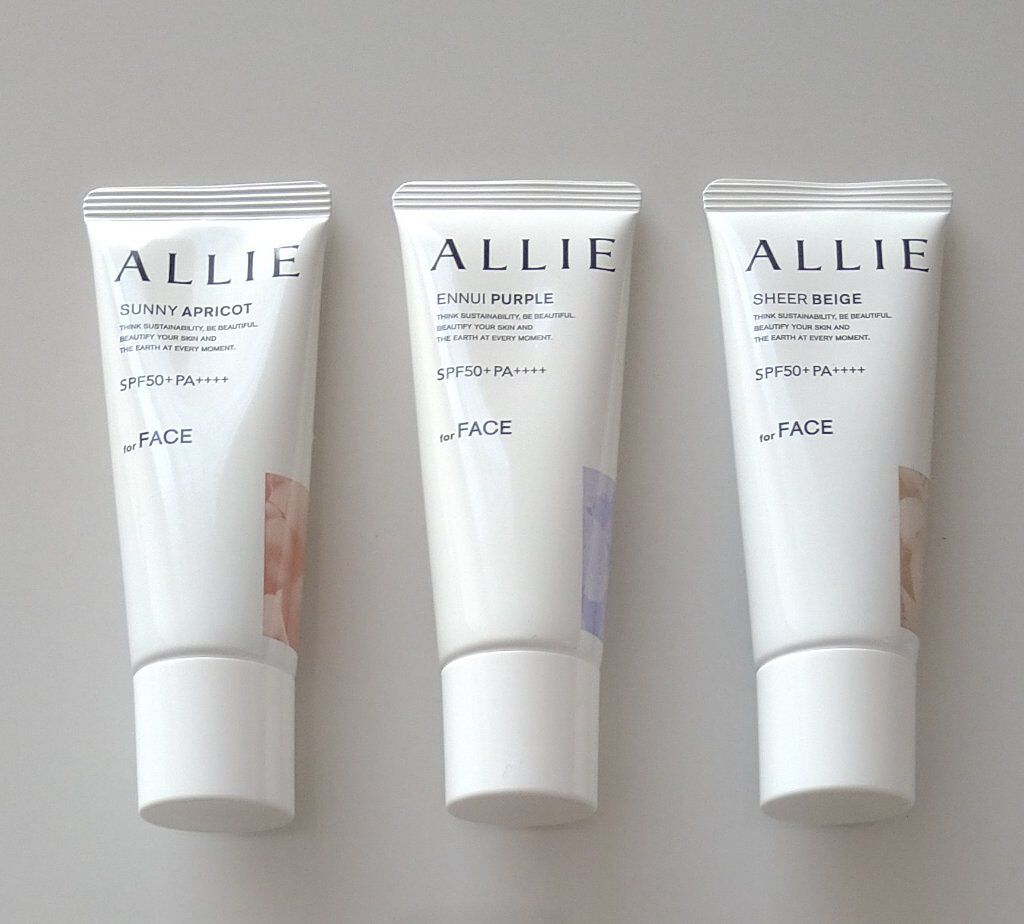 - 世界を想う 美しさつづく*1 日やけ止め おでかけも、マスクを外す機会も増える毎日に。 一部の国・地域・ビーチの規制に配慮した設計のビーチフレンドリー処方。 これ 1 本で、UV カット&顔色補整効果でクマ・くすみ・色ムラまでカバー! テカりにくく、くずれにくいノーファンデ UV*2 【ENNUI PURPLE】 くすみや毛穴をカバー 儚げな透明感のある顔印象続く 澄んだ気分を誘う 紫陽花しずく&セージの香り 【SUNNY APRICOT】 クマや毛穴をカバー いきいきとした血色感のある顔印象つづく 思わず出かけたくなる アプリコット&金木犀の香り 【SHERR BEIGE】 色ムラや毛穴をカバー 均一で抜け感のある顔印象つづく 自然で飾らない シトラスウッディ&パチュリの香り ●一部の国・地域・ビーチの規制に配慮した設計の「ビーチフレンドリー処方」 ●SPF50+・PA++++ ●汗・水 こすれに強く落ちにくい フリクションプルーフ・スーパーウォータープルーフ ●ベタつきにくい感触がつづく ●テカりにくくキレイな肌仕上がりがつづく ●環境に配慮した素材を使用したパッケージ採用 ●美容液成分(保湿)ヒアルロン酸Na配合 ●顔用 ●普段のメイククレンジングで落とせる ●マスク・タオル等につきにくい ●化粧下地効果 *1 スキンケア効果またはメイクアップ効果による肌仕上がりのこと *2 ファンデーション未使用時でも、自然なベースメイクが仕上がる日やけ止めのこと *3 チリ・ほこり・PM2.5・花粉等すべての微粒子汚れの付着を防ぐわけではありません 01:ENNUI PURPLE パープル 02:SUNNY APRICOT アプリコットピンク 03:SHEER BEIGE ミルキーベージュ