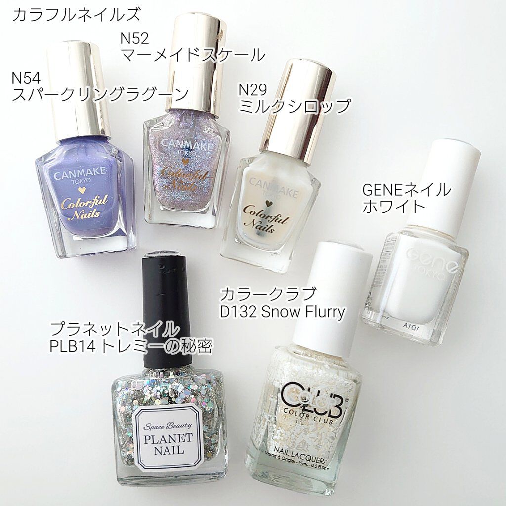 ぎっしりのパープルラメに多色ラメがちらっと煌めく可愛すぎカラーの 〚N102 カラーデニム〛 公式オンラインやamazon等のECサイトでまだ購入できるのでチェックしてみてね🙌🏻 キャンメイク カラフルネイルズ ¥396 〚N29 ミルクシロップ〛 〚N102 カラーデニム〛