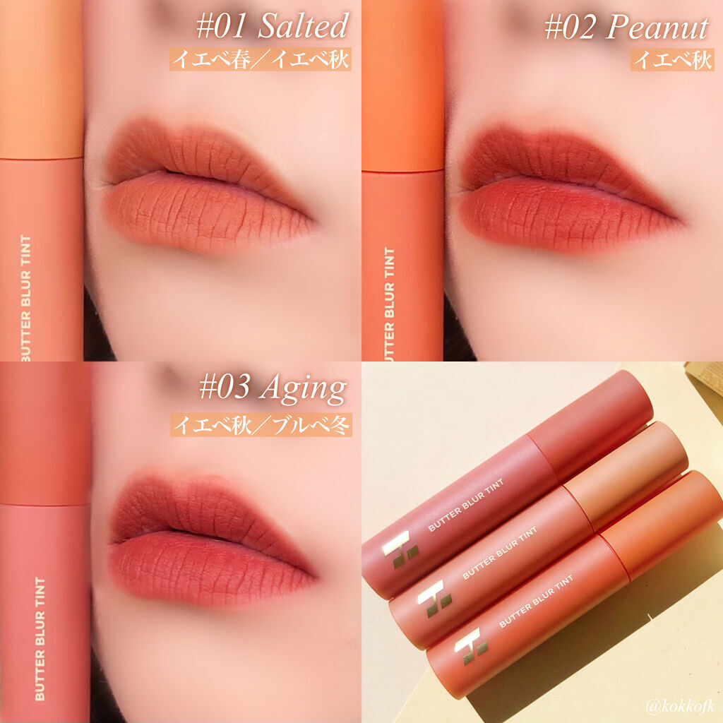 - リアルなバターのようなテクスチャーのマットティント。 シアバターなどの保湿成分配合で、マットリップなのに乾燥しにくい。 ふんわり軽く唇に密着する心地よい付け心地!