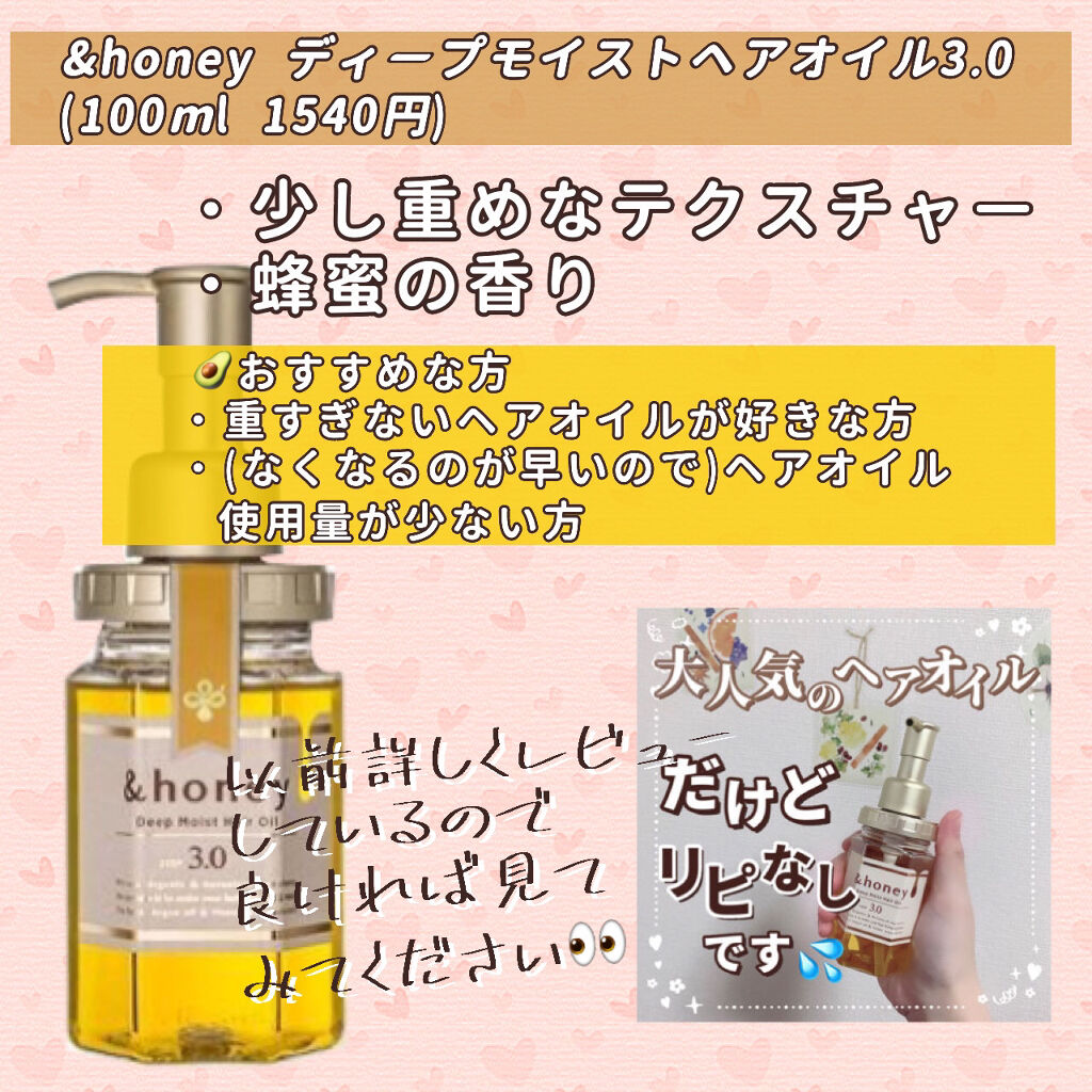 &honey &honey メルティ モイストリペア ヘアオイル 3.0 | 1,540円 |