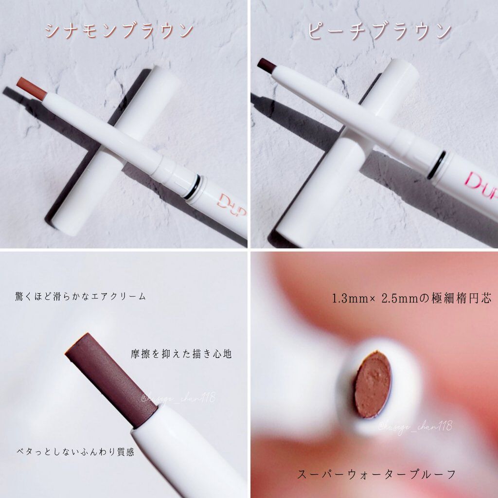 - ※2024年9月〜パッケージ順次リニューアル。尚、これにかかる商品の返品・交換は承っておりません。 「軽くてエアリー、なめらかクリーミィ」 ホイップを固めたような“ふわとろ”質感の新アイライナー ▶摩擦を抑えた描き心地!触れるだけで“スーッ”とほどける「空気感タッチ」 なめらかな描き心地で、まつ毛の隙間や肌の凹凸に引っかからずに狙い通りにラインが描ける。 ▶新形状の極細楕円芯!「キワ埋め」も「目尻」も自在 狙った場所に自在に描ける「1.3㎜×2.5㎜」の新形状。極細ラインもテクニックレス。 ▶ピタッと高密着!高い耐久性。水汗皮脂に強いスーパーウォータープルーフ* まぶたにピタッと密着して、マスクでもよれにくい。 *ディーアップ アイライナーにおいて ・シナモンブラウン “肌になじむ、柔らか 抜け感くすみブラウン” 抜け感と締め感を両立し、ナチュラルに盛れる ・ピーチブラウン “ビターなほんのり赤み系ブラウン” まるでまつ毛の密度が上がったように、自然に目元を大きく見せる ・ソイラテブラウン (2022年10月9日発売) 肌にふわっと溶け込む、まろやかな“ラテカラー” 軽やかなのに深みのある色味で自然と瞳を強調