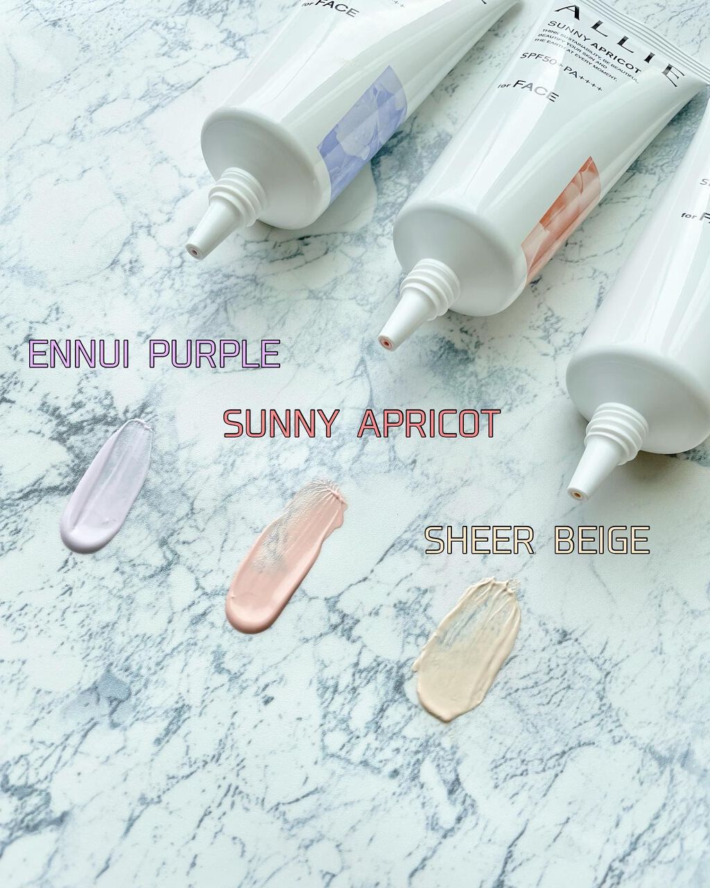パープルの色補整効果で、くすみ・毛穴をカバー。 【SUNNY APRICOT】アプリコットピンクの色補整効果で、クマ・毛穴をカバー。 ファンデーションを使わない時にも、これ1本で儚げな透明感のある顔印象つづく、ノーファンデUV*。 日焼け止めはマストなのでこのアイテムは使い勝手が良くて気に入っています!