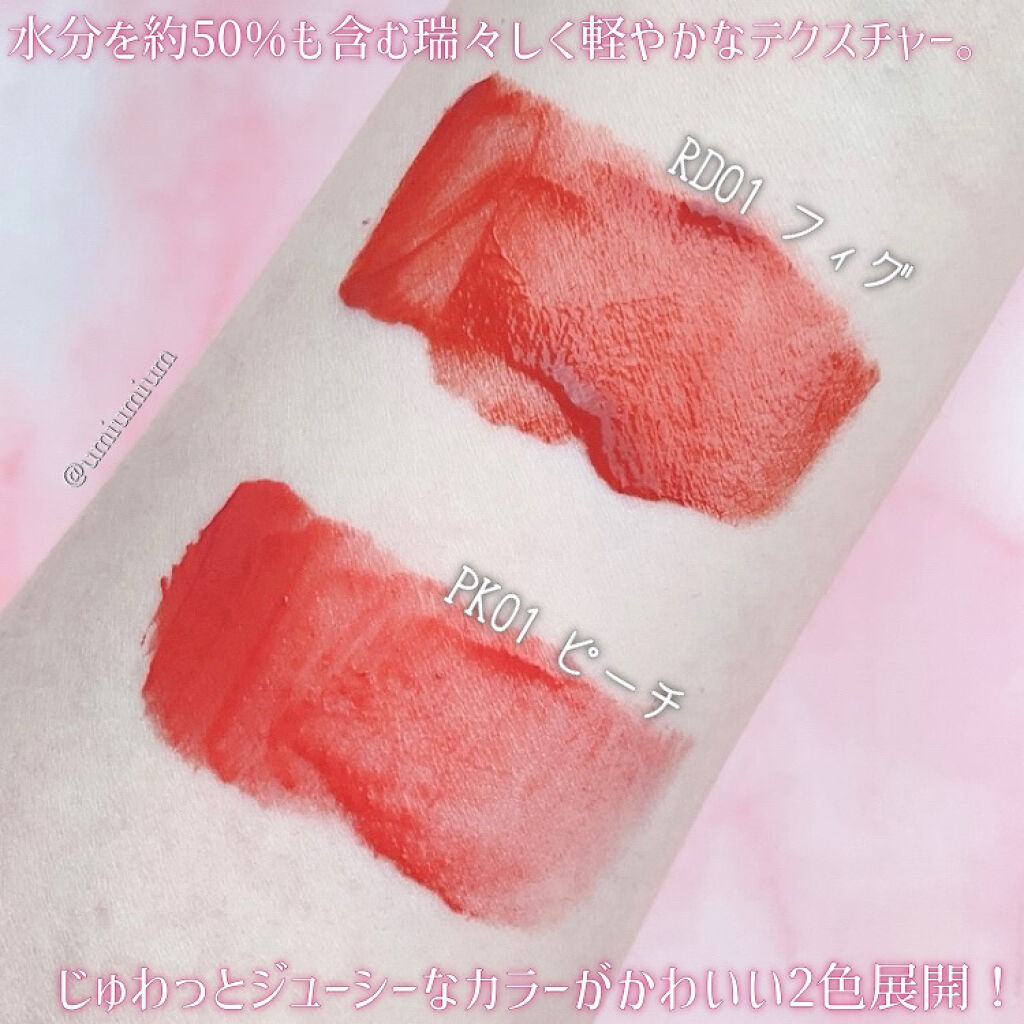 | リップティントランキング第3位 | 重ねて塗っても、ちゅるんと透け感が残って明るめカラーがとっても映える…💕色残りも◎ | 詳細を見る | ||