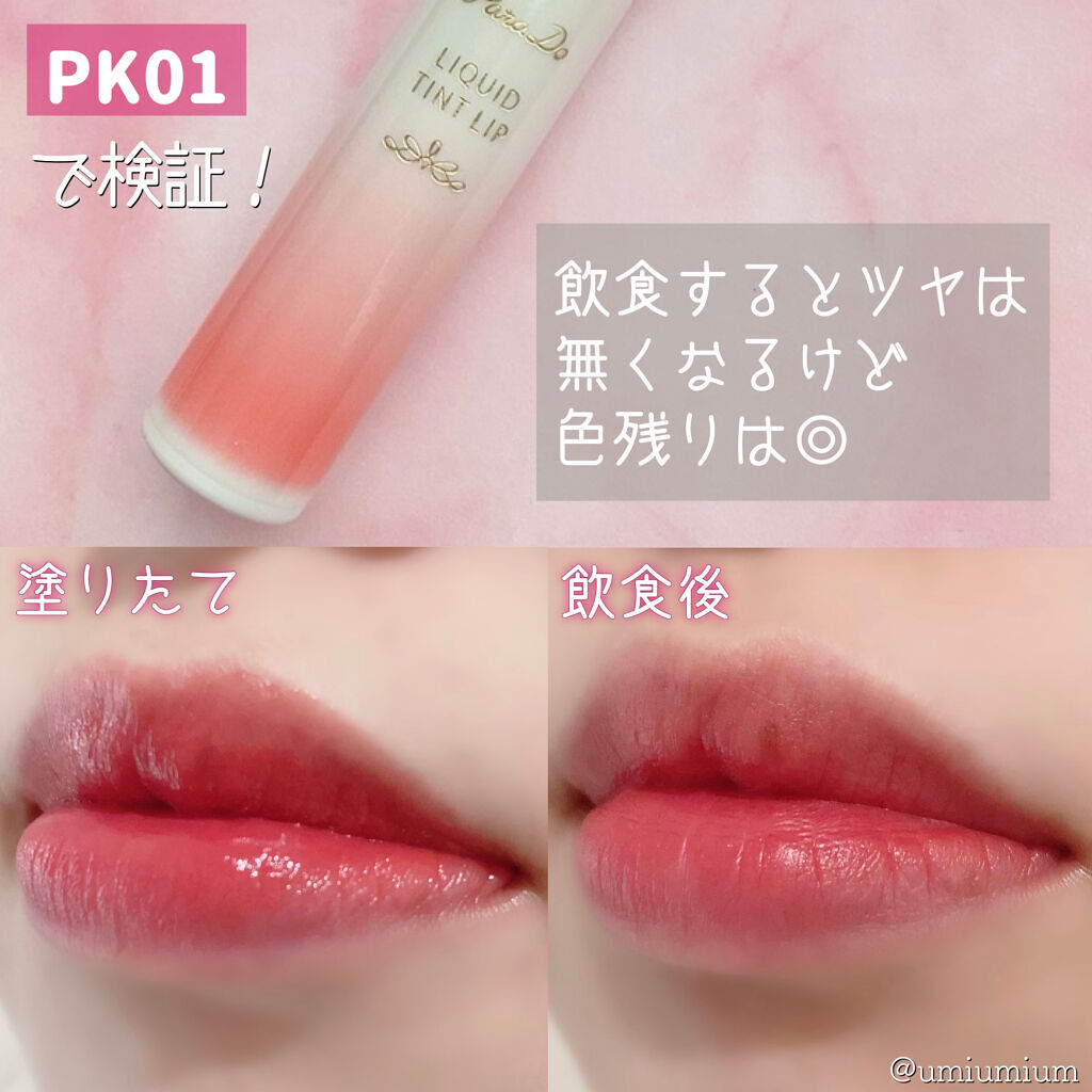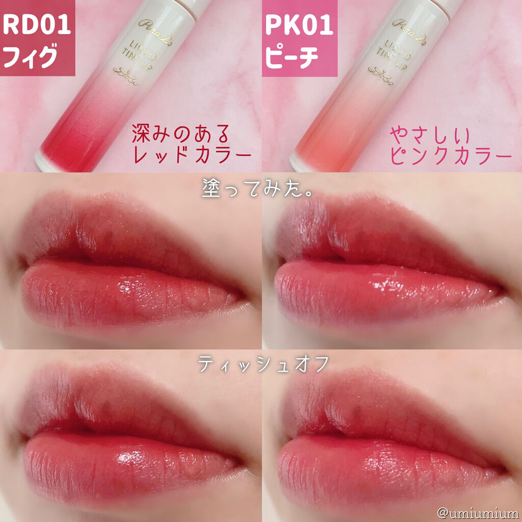 パラドゥさまのプレゼントキャンペーンに当選していただきました。リキッドティントリップPK01ピーチ(ピンク系)¥1,100コンビニで買える♡さらりと軽い付け心地のリキッドティントリップ!サラッとしたテクスチャーで塗りやすいです。私の唇だと、鮮...