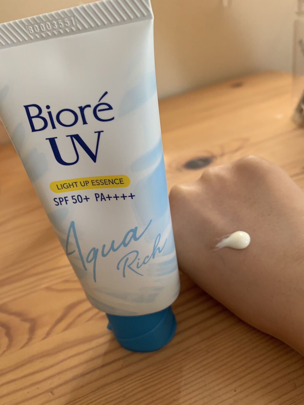 ~日焼け止め~今回はビオレUVアクアリッチライトアップエッセンスです🩷日焼け止めがなくなるペースが早くなり始めました朝と昼2回は塗る冬場は朝しか塗らないうめもちちです(;´д`)おさぼりさんですみません😣💦⤵顔にも身体にも使えます!石鹸で落と...