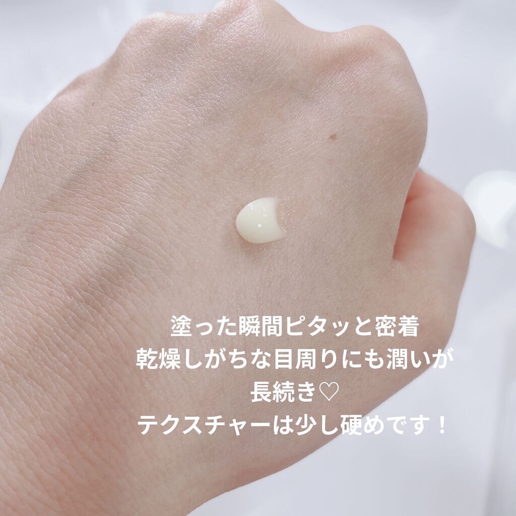 - 長時間うるおい持続処方。乾燥による小じわを目立たなくし(効能評価試験済み)、うるおってふっくらハリのある目元へ。 肌へのやさしさに配慮した、無香料・無着色・鉱物油フリー・アルコール(エタノール)フリー・パラベンフリー