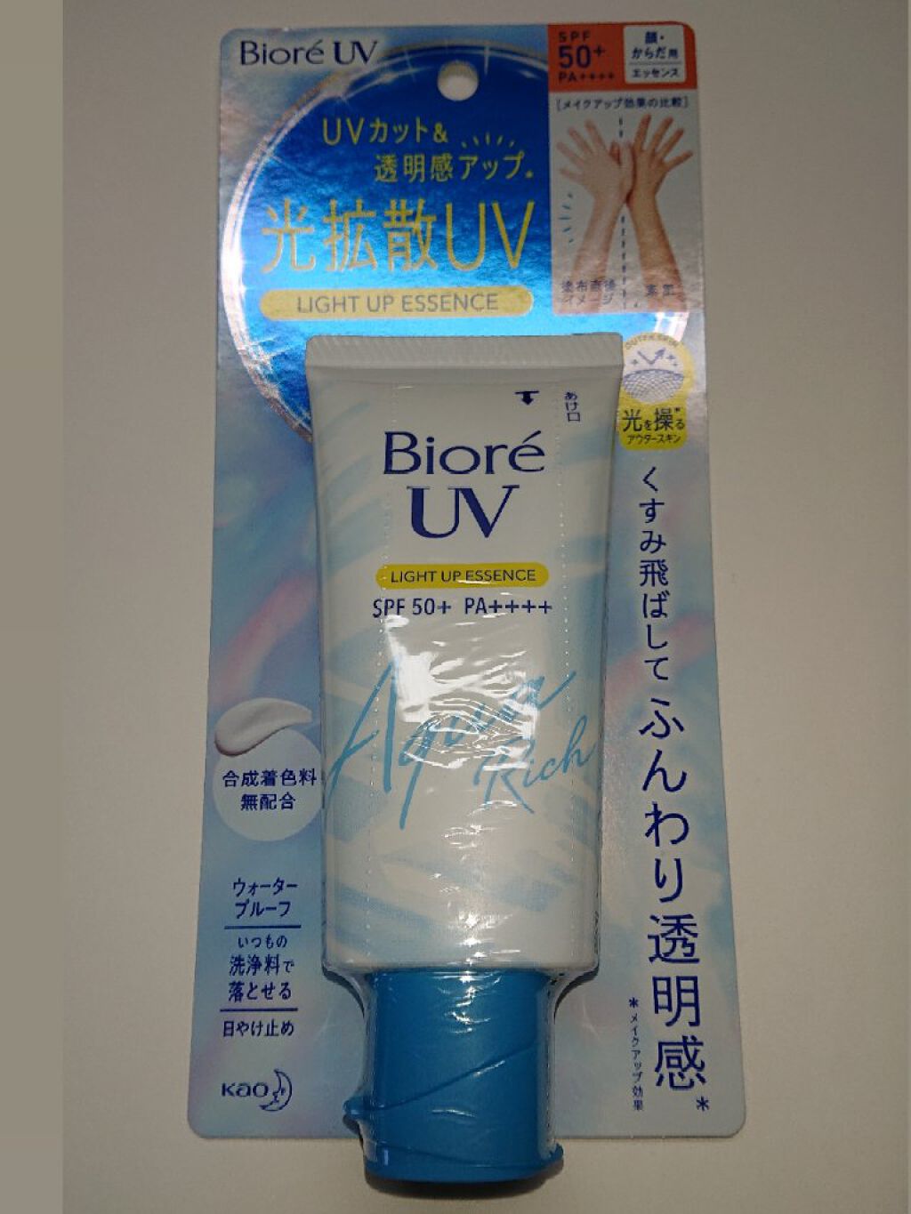 ビオレUVアクアリッチライトアップエッセンスフレッシュパウチまえにチューブタイプでお試し買いしてみたらすごく良くてパウチタイプで再購入しました!!私的にですがワントーン明るくなって服(スーツ)に色移りも感じなかったので高機能体感!!(ちゃんと...