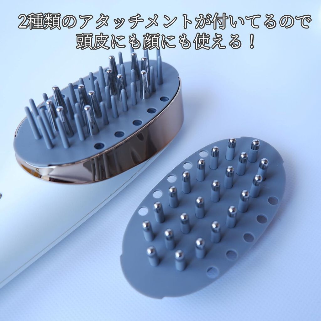 - 頭皮の土台の筋肉、頭筋からケアするヘッドスパ体感のブラッシングリフト美顔器 ■2つのヘッドで、頭皮とお顔それぞれに適したモードでリフトケア※1 ※1 機械を上に動かすこと 1, SCALPモード 12本の電極ピンから頭皮専用の独自の低周波EMSを出力し、硬くなりがちな頭筋を刺激します。さらに、ブラッシングしながら毎分約7000回の微細な振動で、頭皮全体をストレッチしていきます。マイクロカレントも同時に出力しながら、低周波と振動のシナジーで効率的なケアが可能に。 2. FACEモード 22本の柔軟なピンで、“多点式”電極が低・中周波EMSを複雑に出力。30種類以上から構成される表情筋に対して、あらゆる方向からEMSを出力し多角的かつ集中的に表情筋を刺激します。さらにマイクロカレントも同時に出力し、表情まですっきりとした印象へ導きます。 ■アタッチメントを付け替えるだけで自動モード切り替え マグネット式のブラシアタッチメントを装着すると自動で識別しモード切り替え。難しい操作をすることなく簡単につけることができ、すぐにケアを始められます。 ■ドライでもお風呂でも使える設計 コンパクトで軽量。持ち運びにも便利なので、人と会う直前にさっと取り出し、すぐに引き締めケアをすることも可能。IPX5相当の防滴仕様なので、お風呂で使用することも。身体が温まった状態で使用することで効率的にケアできます。