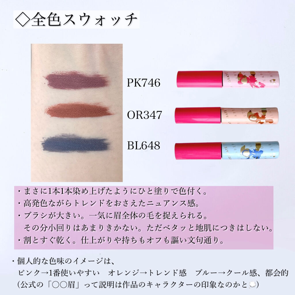 | アイブロウランキング第72位 | ふわっと柔らかく、立体的な質感になるアイブロウマスカラ。適度にツヤ感もありますが、 ナチュラルな仕上がり。 | 詳細を見る | |