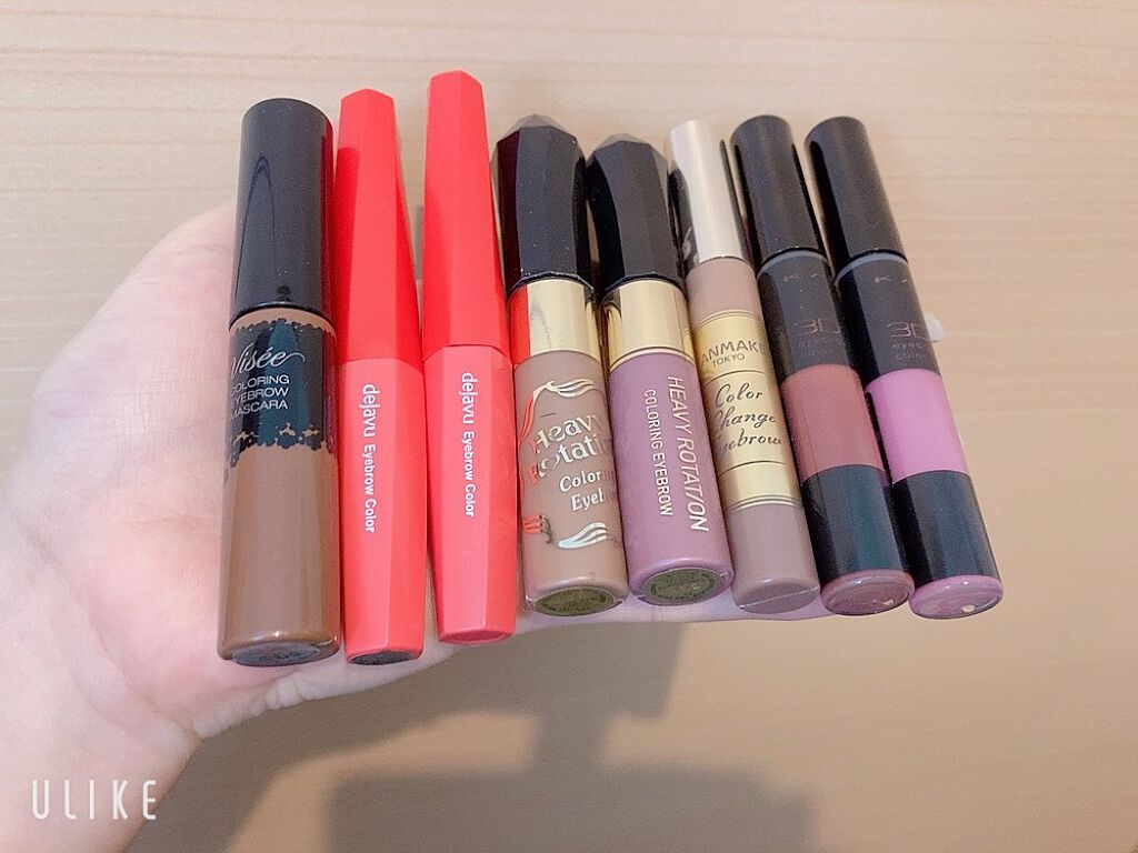 パープルっぽいアイブロウパウダーを買ったので、それに合わせてパープルの眉マスカラです とりあえずパープルの眉マスカラした後にアッシュブラウンの眉マスカラ重ねようかな? 赤みのある眉マスカラも買いました! 何か一つしか使えないなら眉マスカラをするぐらい眉マスカラ大事なのでついつい色々買いがち(›´ω`‹ )