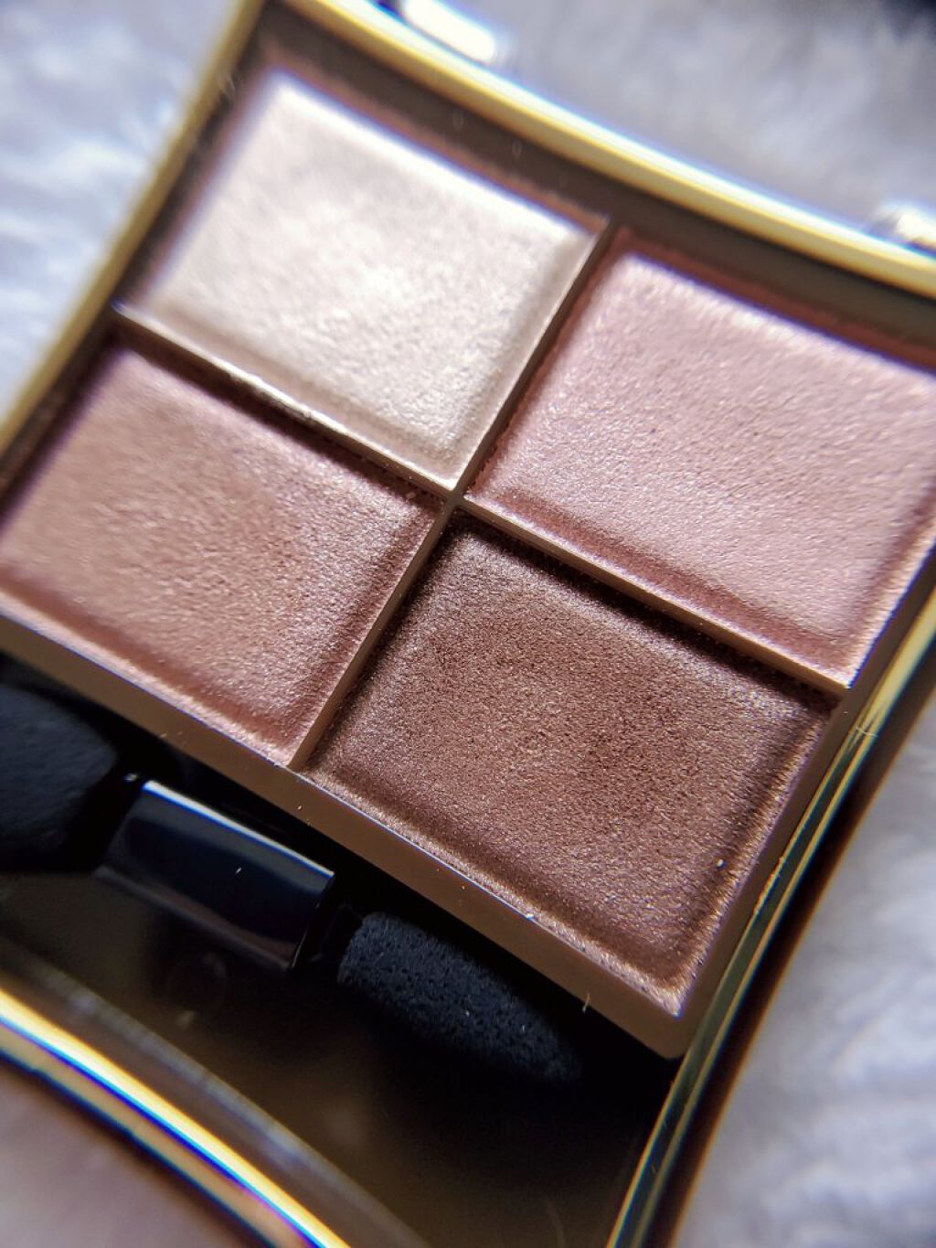 - 【ポイント】 1.失敗しらずのブラウンベースの4色パレット!簡単にグラデーションを実現。 2.しっとりリッチな質感!するする伸びて粉飛びもなく目元の乾燥も防ぎます。 3.上品な輝きの繊維パール+金パールを贅沢に配合。ギラつかない大人のツヤを演出。 <SR01'23・SR03'23・SR06'23・SR11'23(限定デザイン)> 実力派グラデアイシャドウからデジタルアートをあしらった限定デザイン登場。 しっとりリッチな密着感。肌のなじみの良い実力派グラデアイシャドウ。
