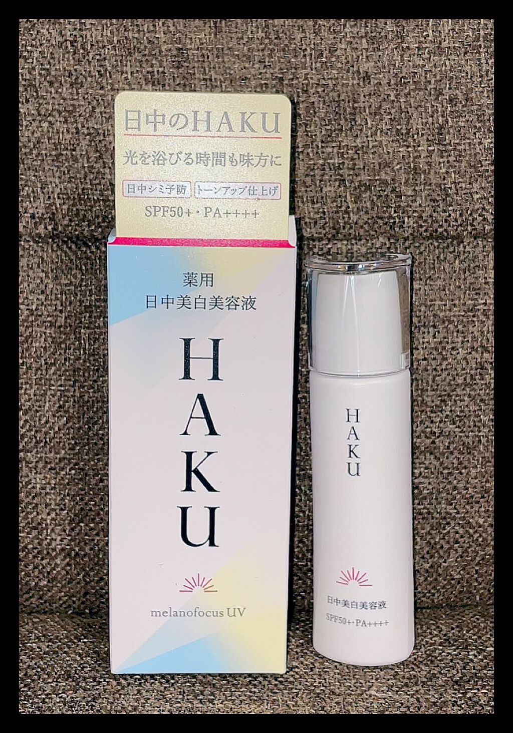- 販売名「メラノフォーカスUV」 SPF50+・PA++++ 日中のHAKU。光を浴びる時間も味方に、日中だからできる美白ケアのアプローチ。 シミ予防研究の先端技術を搭載し、日中ならではの美白ケアを可能にした、薬用日中美白美容液です。光を浴びる時間も味方にして、明るく透明感のある肌に導きます。 ○2種の美白有効成分を肌の奥まで届け効かせる。 ○日中の肌環境に着目し、Wデイエフェクターを配合。うるおいを与え届ける。 〇ファインレッドパールαが効果的に光を放ち、シミや色ムラを目立たせない。トーンアップ効果で、明るく透明感のある仕上がり。 〇みずみずしい美容液がスーッとなじむ。化粧下地としても使える。 ○無香料・アレルギーテスト済み・ニキビのもとになりにくい処方。 (全てのかたにアレルギーが起きない、ニキビができないというわけではありません)。
