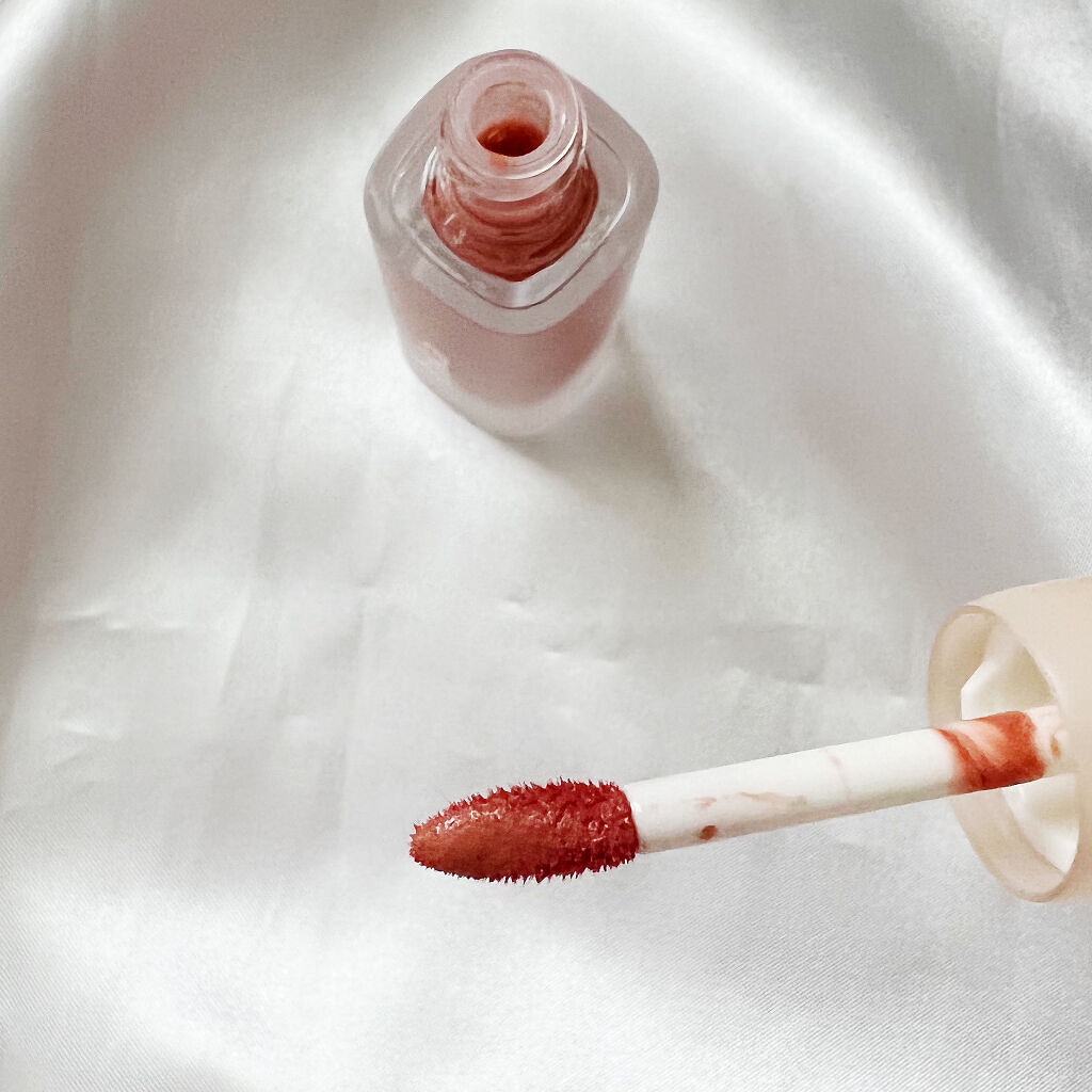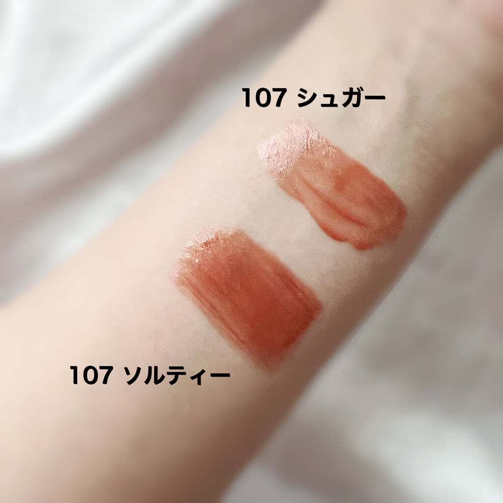 白いパケで開けるところがゴールデンピンクになって、 まるでデパコスみたいな質感🥺💕💕💕 ツヤタイプ 塗ってしばらく置いたら膜ができてツヤも色持ちもずっとキレイに残る 色持ち良いです。ツヤ無くなっても色がそのままキレイに残る 匂いはお花の香りです。 保湿力はかなり高いと思う◎