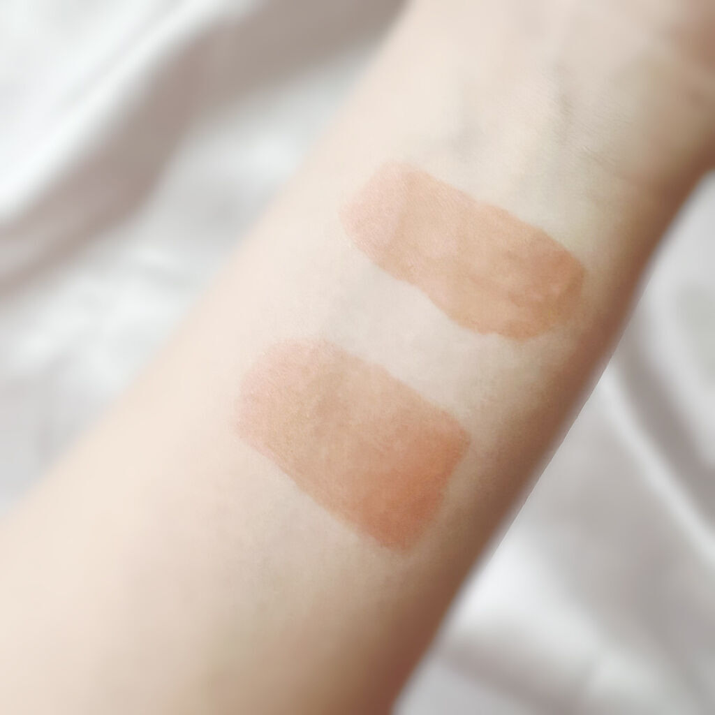 今までみんなご存知のジューシーラスティングティントも愛用してますが 自分的にはかなり高級感がアップした↑ 実物みて感動するぐらいめっちゃ好きなパケ😭🌷 名前通りピーチカラーでイエベさん絶対買って欲しいかわいい色です❤️ イエベさんでも簡単に使えるローズカラーで デートにおすすめなお色です◎ オレンジブラウンカラーで 塗ったら一気にオシャレになれるし秋にぴったりなカラーです🍁 正直。既存のジューシーラスティングティントと似てるような質感ですが くちびるに塗ると新作のほうが若干塗りやすくなった気がします 色持ちは相変わらずめっちゃ良いです◎ 画像の7枚目からはスウォッチ、参考になればと思います。 ティッシュで擦っても色はちゃんと残ってる 既存のティントリップは甘いキャンディな匂いがしたが、 今回の新作は少し匂いもしますが、嫌な甘い匂いではない。 匂い人それぞれ感覚違うですけど、個人的には結構大丈夫だし、むしろ前の商品より好き♡