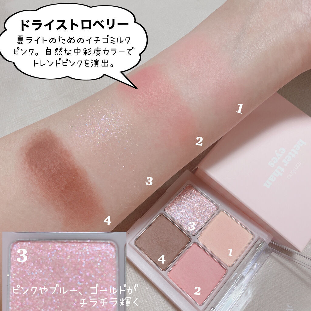| アイシャドウパレットランキング第44位 | 4色で目元がめちゃくちゃ綺麗に仕上がる♡綺麗にラメが乗るので本当にかわいい! | 詳細を見る | |