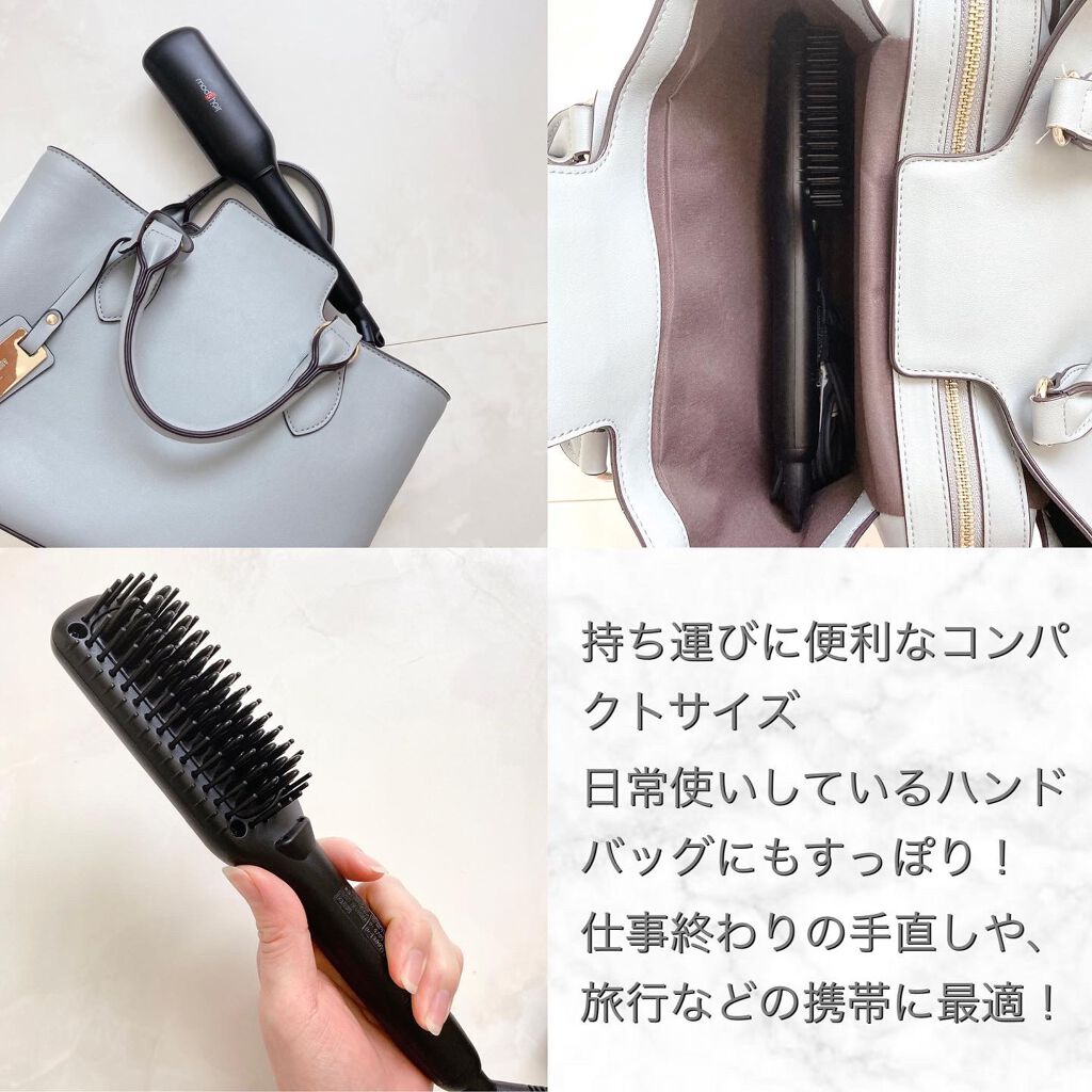 - ストレートやワンカール、ボリュームアップにも。いつものブラシ感覚でサッとまとまるツヤ髪へ。
