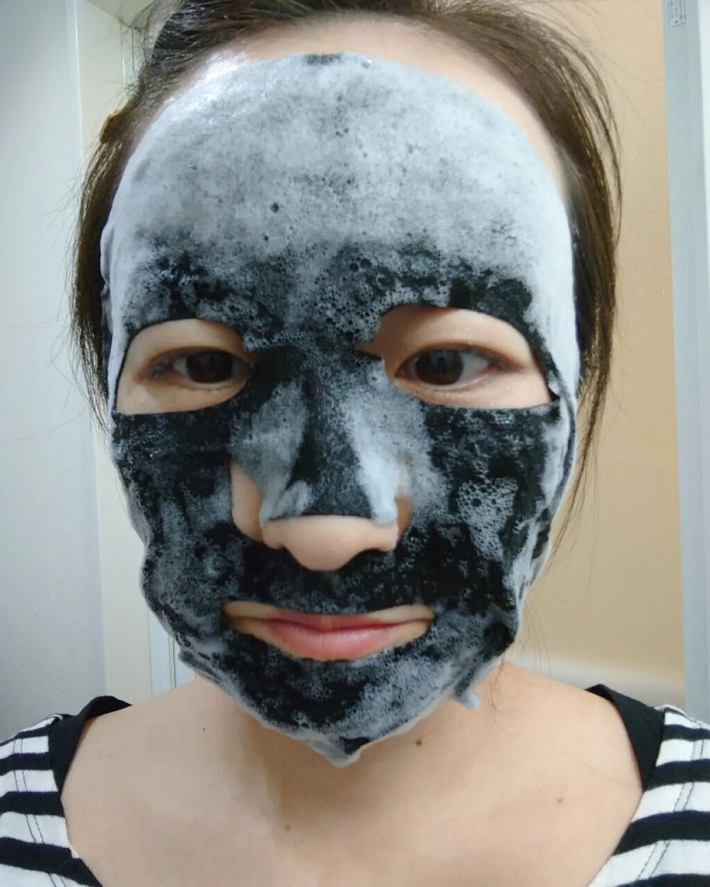 泡のパックが面白い🌟パックの時間をおいたら、洗い流すタイプよくパックを揉んでから使う顔に貼っているうちに手も泡だらけ顔に貼ると泡がどんどん増えて面白い🌟シートを顔にのせるだけで 皮脂汚れなどの吸着効果が高いチャコールバブル(竹炭泡)が発泡し毛...