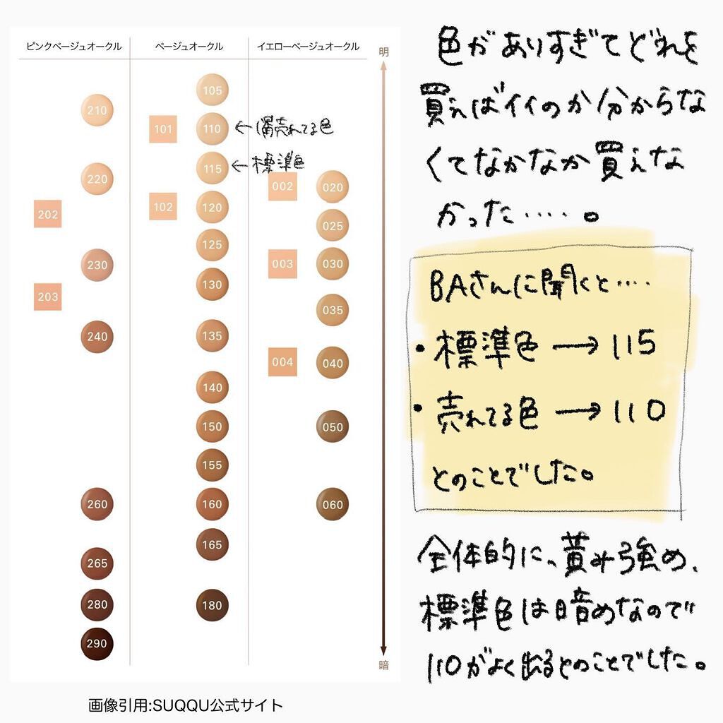 コメント失礼致します SUQQUザリクイドファンデーション 購入を考えているのですが 何番がおすすめとかありますか? 画像拝見させて頂きましたが 確か黄色いですね