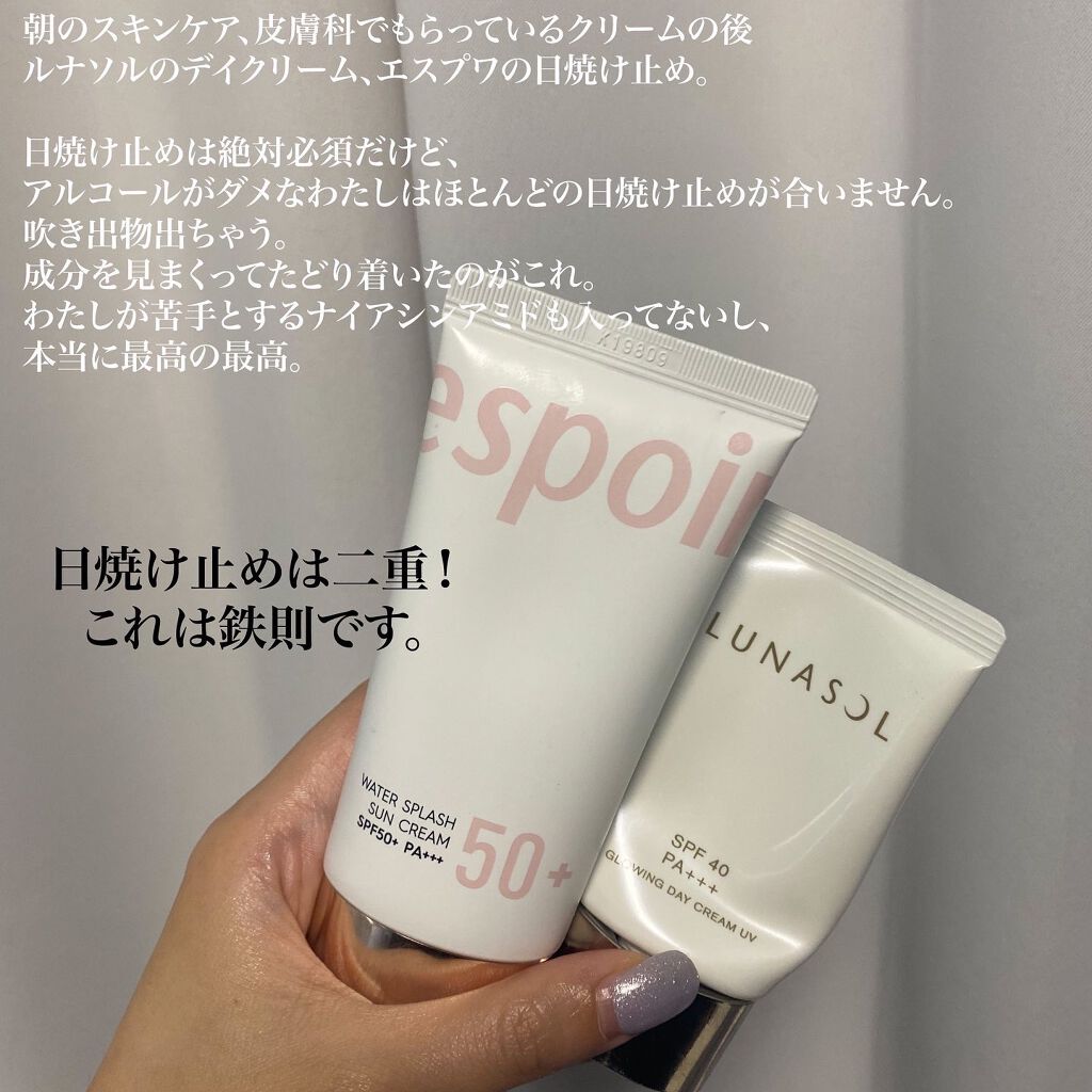 \ツヤとトーンアップ日焼け止めは最高✨☀️/#EspoirウォータースプラッシュサンクリームセラミドSPF50+PA++++¥2376ついに今年も日焼け止めはじめました🧴エスポアの日焼け止め下地ははじめましてなんだけど思ってたよりめちゃくちゃ...