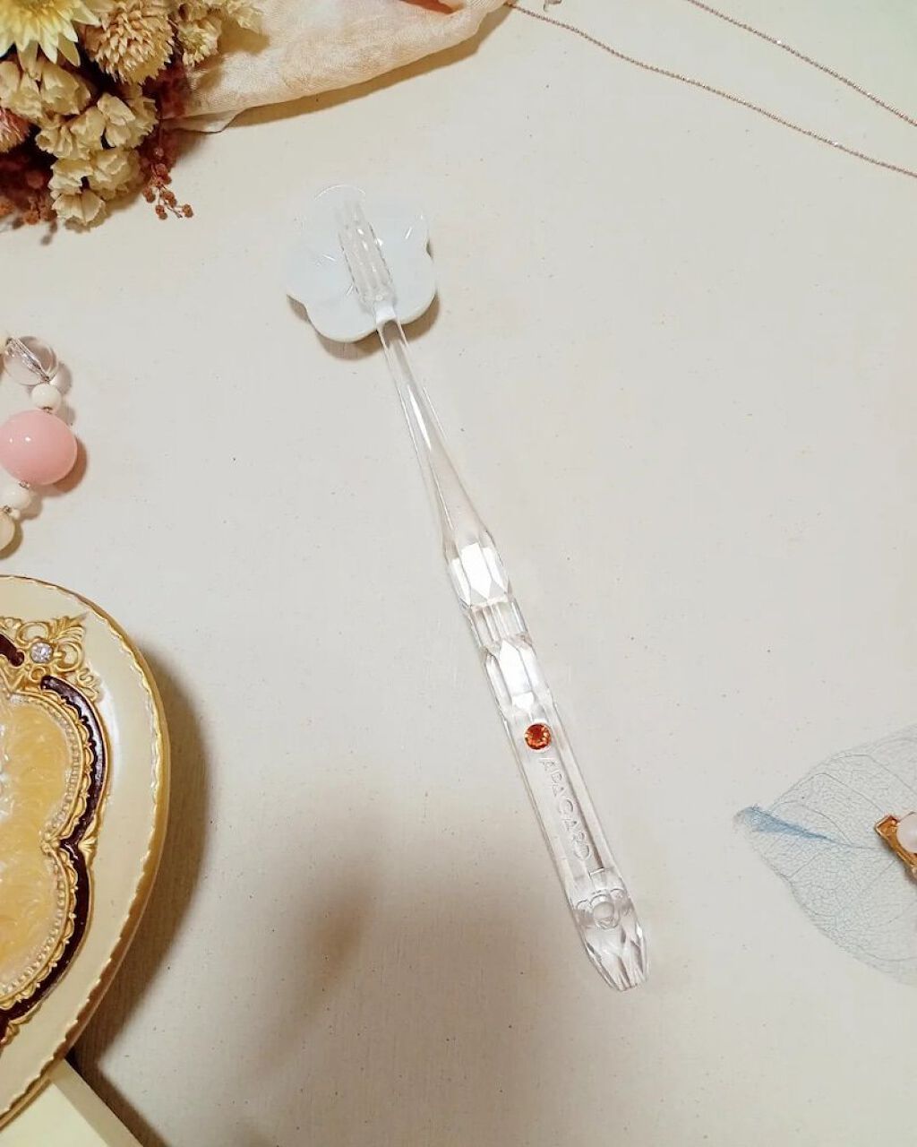 - 美しい透明ハンドルにクリスタルをあしらった歯ブラシ。3列コンパクトヘッド。独自のアパタイト毛*で、ブラッシング時にマイナスイオンを発生。気持ち華やぐクリスタル歯ブラシで着色・歯垢を落として白い歯へ。耐熱温度:60℃ *アパサイダー(抗菌剤)とトルマリンを練りこんだ先細毛 2021年3月12日 パッケージを変更して登場。 みずみずしく凛としたクリスタル、甘さと洗練さを兼ね備えたバイオレット、フェミニンな印象の華やぎローズ、ポジティブなパワー溢れるトパーズ。