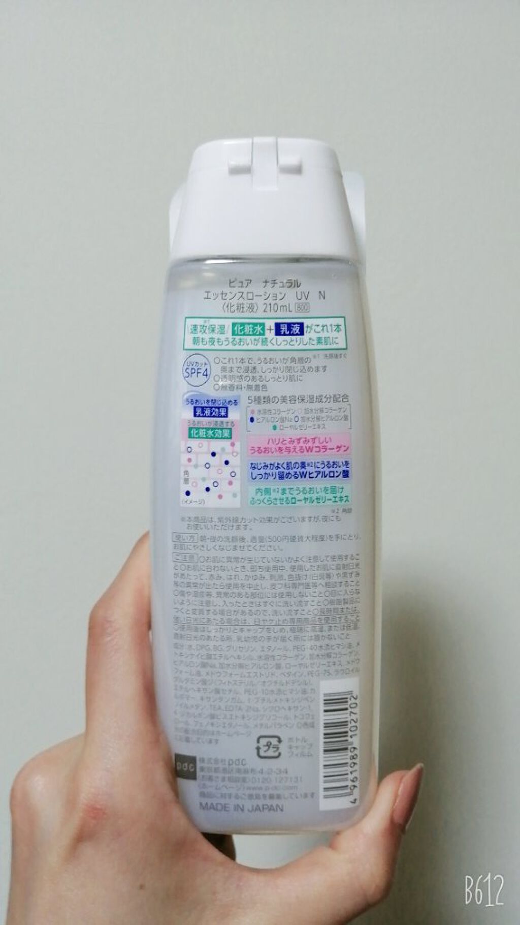 pdcピュアナチュラルエッセンスローションUVスキンケアをするのが面倒くさい時にとりあえずこれを使用してます😂❣️化粧水と乳液これひとつで乾燥対策にも✨乾燥による敏感肌にも🆗テクスチャーはとろっとしたみずみずしい乳液タイプ。肌馴染みがよくスー...