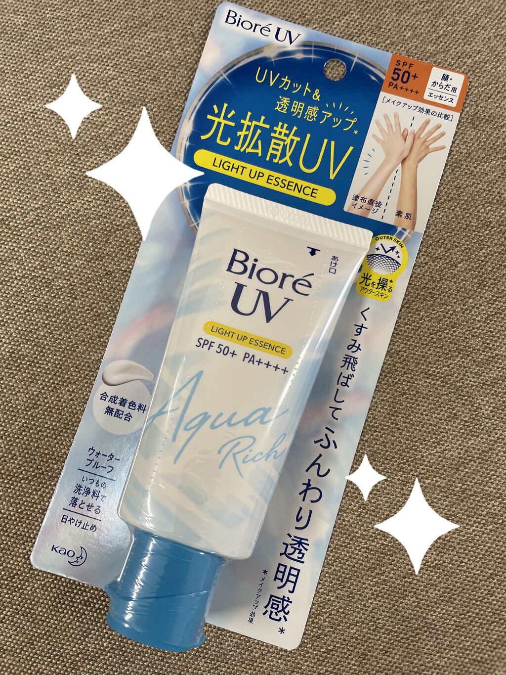 くすみぶっ飛ぶ日焼け止め(メイクアップ効果による)ビオレUVアクアリッチライトアップエッセンスくすみがメイクアップ効果によりぶっ飛んだように見えるビオレUVアクアリッチライトアップエッセンスを紹介します♡SPF50+・PA++++肌表面にキメ...