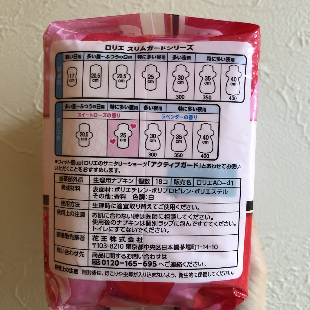 商品詳細情報ロリエ スリムガード スイートローズの香り(特に多い昼用 18コ入)
