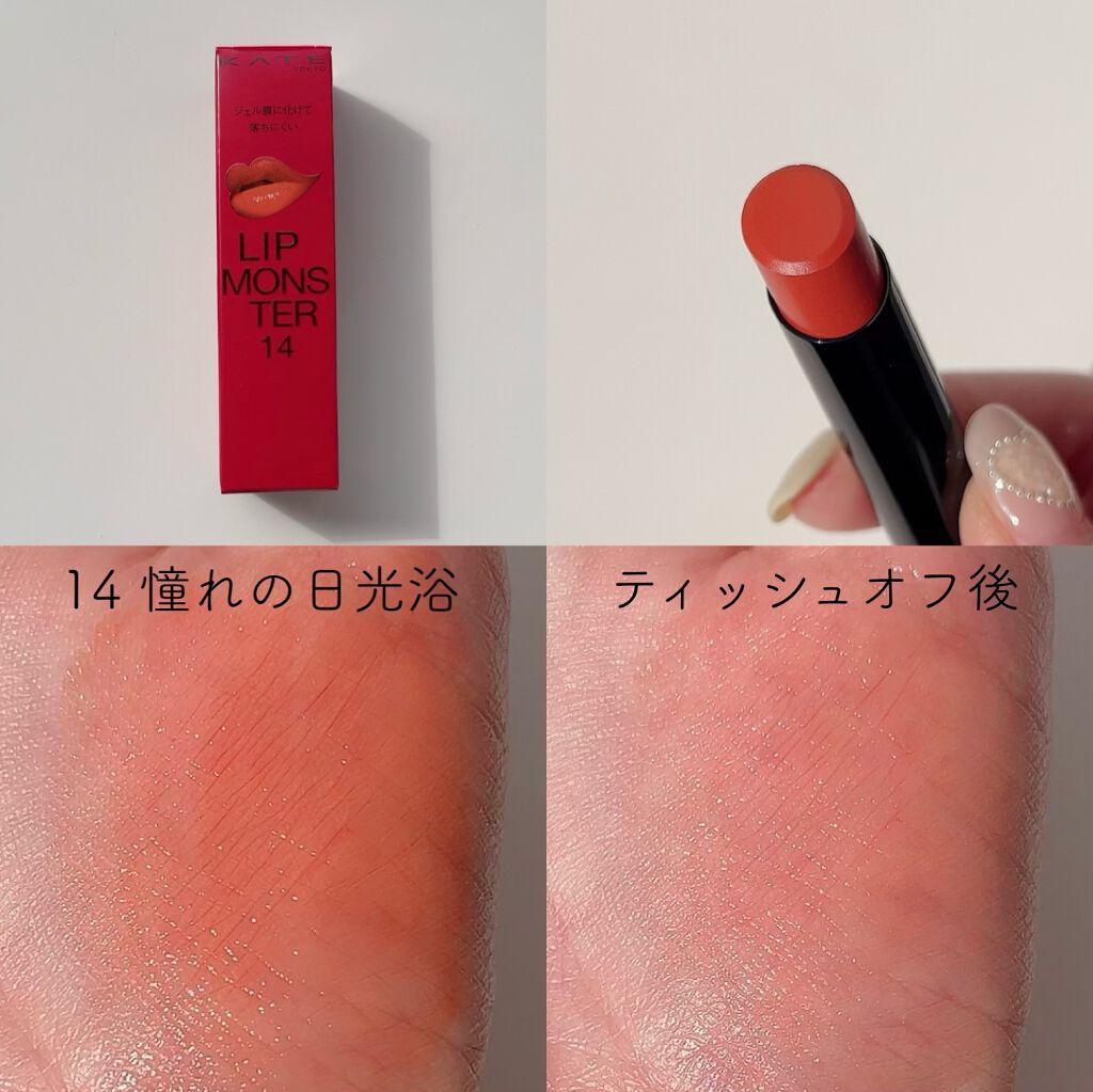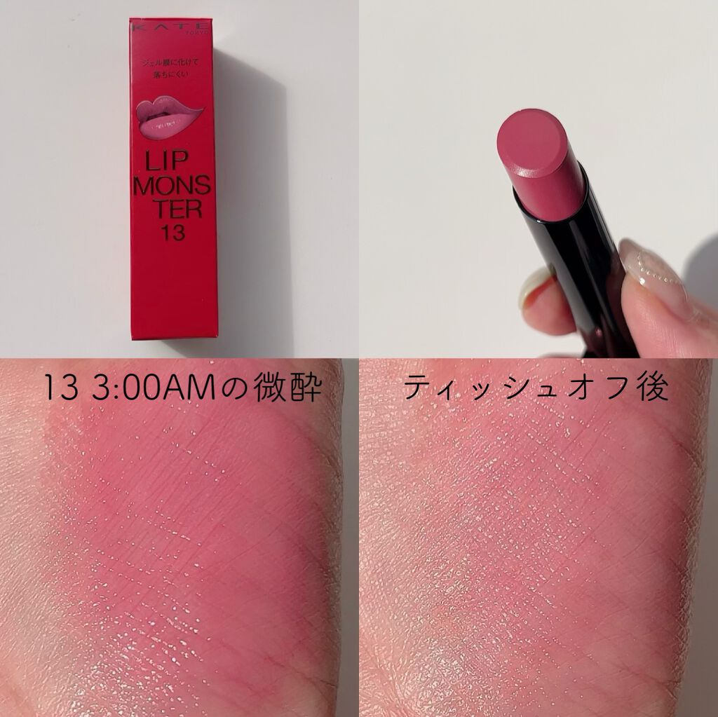 リップモンスターKATEリップモンスター1本¥1,540(税込)01欲望の塊02Pinkbanana03陽炎04パンプキンワイン05ダークフィグ062:00AM07ラスボス☑︎高発色☑︎落ちにくい☑︎高保湿本当に食べても飲んでも取れなくてびっ...