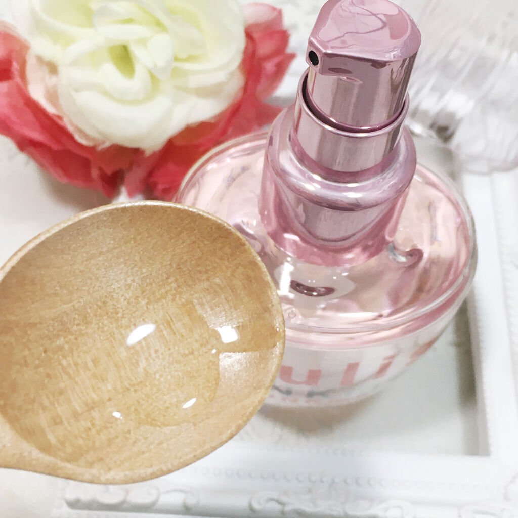 ululisピンクミーウォーターコンクコントロールヘアオイルうるサラ髪濃密ダブルうねりケア水溶性ローヤルゼリー✕コラーゲンメルティフルールの香りポンプタイプですが勢いよく跳ねる場合ありwとてもサラサラで軽いつけ心地のオイルショートやボブぐらい...