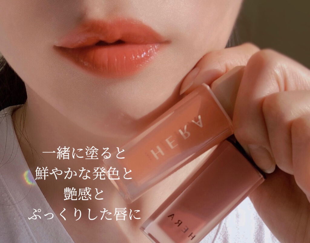 このグロスは口紅とグロスの中間くらいのこっくりしたテクスチャーで プランピング効果抜群の、ぷっくりプルプルな唇を演出してくれます🤍 高発色でグロスではなかなかないタイプです!! なので口紅とグロス2つ塗るのはめんどくさいけど発色は譲れない!!って方におススメです💗 薄ーく指でぽんぽん塗りをすれば、リップクリーム代わりにもなるので 匂いはHERA特有のハーブのような香りで パッケージが可愛くて使うたびに気分が上がります🎵💗