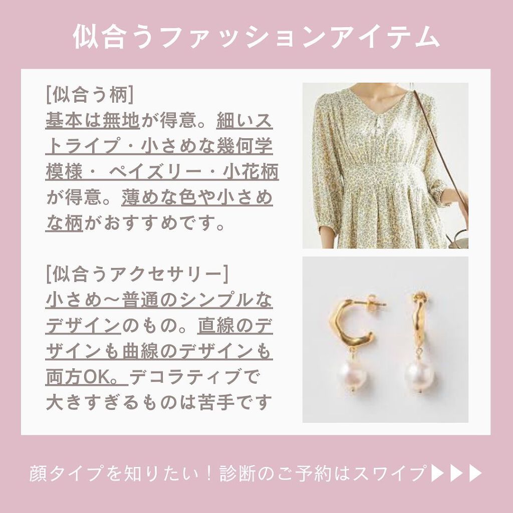 い぀もご芧いただきありがずうございたす🌷✚ むメヌゞコンサルティングサロン Attrait(アトレ)の原䞭しおりです🐰🌞 本日の投皿は#顔タむプ蚺断 です✚✚ 🎀 顔タむプ蚺断®ずは 顔タむプ蚺断®ずは顔型、立䜓感、パヌツの配眮バランスや圢状などからお顔のタむプを分類し、その人に䌌合うファッションテむスト・柄・玠材・アクセサリヌ・ヘアスタむルなどがわかる分析法です✚✚ 今回は#顔タむプ゜フト゚レガント さんの特城や䌌合うテむストを玹介させおいただきたした🧞✚ 少しでも参考になりたしたら幞いです🕊🌷 【サロンメニュヌのご案内】 🎀トヌタル蚺断コヌス 28,000円(皎蟌) あなたの魅力を匕き出す぀の「矎人軞」を知るために必芁な3぀の蚺断をトヌタルで受けられる䞀番人気のコヌスです✚ 🎀パヌ゜ナルカラヌ蚺断コヌス 15,000円(皎蟌) サむ・アヌトパヌ゜ナルカラヌシステムを䜿い蚺断を行いたす。色盞(む゚ベ・ブルベ)だけでなく、明床(明るさ・暗さ)や圩床(鮮やかさ・゜フトさ)も考慮し、12タむプに分類いたしたす✚✚ 🎀顔タむプ蚺断® 10,000円(皎蟌) 顔パヌツの配眮バランスや圢状からお顔のタむプを分析し、お䌌合いのファッションテむスト、玠材、柄、アクセサリヌ、ヘアスタむルなどをお䌝えいたしたす✚✚ 🎀7タむプパヌ゜ナルスタむル蚺断 15,000円(皎蟌) 骚栌、顔のパヌツ、個性分析倖面・内面を総合的に分析しおお䌌合いのスタむルをご提案いたしたす✚✚ 【営業日】 毎週日曜日 11:00〜21:00(最終受付19:00) ※臚時䌑業日有 個宀シェアサロンでの蚺断ずなりたす。 サロンの䜏所はご予玄埌にお知らせいたしたす🙇🏻‍♀ 【ご予玄方法】 Instagramプロフィヌルのリンク たたはDMにおご予玄をお願いいたしたす💌 お友達ずペア蚺断なども受け付けおおりたすので お気軜にお問合せください🧞🌷 #顔タむプ #顔タむプフレッシュ #顔タむプフェミニン #顔タむプ゚レガント #顔タむプ゜フト゚レガント #顔タむプクヌル #顔タむプクヌルカゞュアル #顔タむプキュヌト #顔タむプアクティブキュヌト #顔タむプアドバむザヌ #むメコン #むメコン沌 #むメヌゞコンサルタント #むメコン奜きな人ず繋がりたい #パヌ゜ナルカラヌ蚺断 #骚栌蚺断