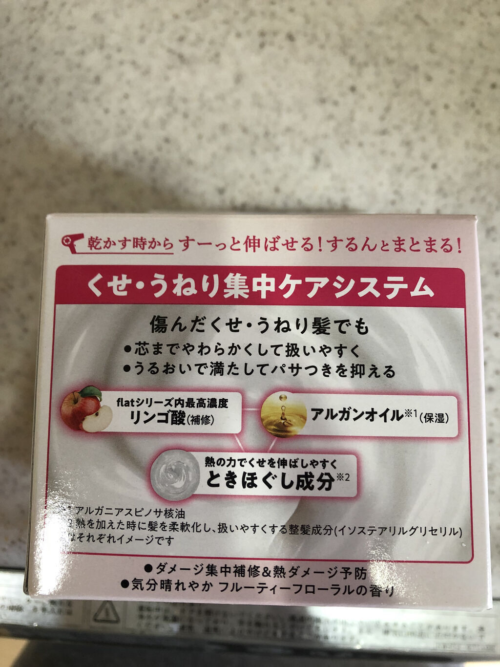 - 乾かすときからすーっと伸ばせて、するんとまとまる、くせ・うねり集中ケアマスク ●くせ・うねり集中ケアシステム採用 傷んだくせ・うねり髪でも、芯までやわらかくして扱いやすくしながら、うるおいで満たしてパサつきも抑える ・ときほぐし成分※3 ・flatシリーズ内最高濃度のリンゴ酸(補修) ・アルガンオイル※4(保湿) 〇ダメージ集中補修&熱ダメージ予防 〇気分晴れやか フルーティーフローラルの香り ※3 熱を加えた時に髪を柔軟化し、扱いやすくする整髪成分(イソステアリルグリセリル) ※4 アルガニアスピノサ核油 容量 180g