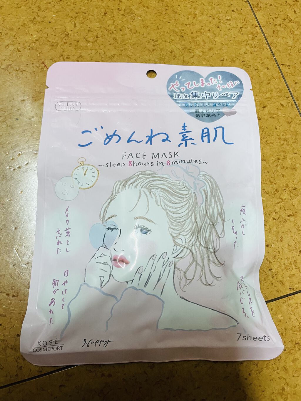 - 【クリアターン ごめんね素肌マスク】 負担をかけて、あれてしまった肌の素肌環境※1をととのえる“速攻集中リペア※2マスク”です。 ① あれがちな肌を素早くコンディションケア! ザクロエキス、桜エキス※3、ウメ果実エキスBG配合し、ゆらぎやすい肌環境をととのえ、肌あれをケアします。また、うるおいケア成分として、ヒアルロン酸、白キクラゲ多糖体BGを配合。外的ストレス※4や不規則な生活の影響を受けやすい肌も健やかでゆらぎにくい肌へみちびきます。 ②敏感肌も使える、弱酸性・低刺激処方 無香料・無着色・無鉱物油・アルコールフリー(エチルアルコール)・パラベンフリー・紫外線吸収剤フリー・シリコーンフリー・パッチテスト済み・アレルギーテスト済み・スティンギングテスト済み・敏感肌自覚者による連用テスト済み(すべての方にアレルギーや皮膚刺激が起きない、刺激感がないというわけではありません。すべての方の肌に合うということではありません。) ③角質ケアもできる!凸凹高密着シート コットン生まれのやわらかな肌触りのベンリーゼを使用。 表面に凸凹のエンボス加工を施しているため、密着性が高く、はがしたマスクでやさしく顔をふきとることで角質ケアもできます。 ※1 うるおい環境のこと ※2 うるおいお手入れのこと ※3 ソメイヨシノ葉エキス、ウメ果実エキスBGはウメ果実エキス・BG(保湿) ※4 乾燥による刺激のこと