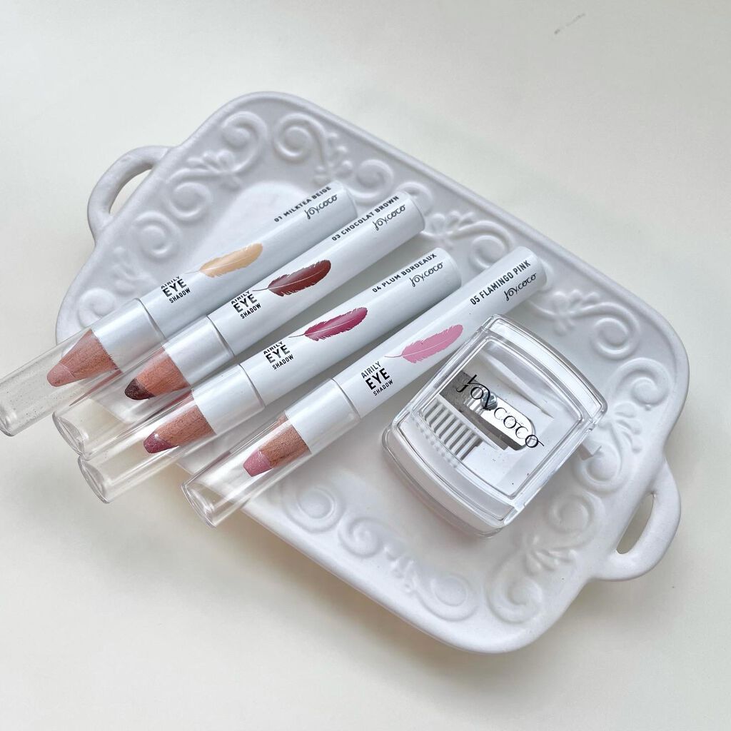 - スティックなのにパウダー。1本で思い通りのアイメイクが自由自在に描ける「ジョイココ エアリーアイシャドウ」。1本でアイメイクが完成できることを目指した新体験のアイシャドウ。指で優しく撫でるだけで好みのグラデーションを演出し、スティックだから気になる部分はピンポイントで狙えます。パウダーを優しく芯に閉じ込める特殊な技術で、ふんわり羽のように軽いエアリー感のある書き心地を実現。アイシャドウだけではなく、涙袋・ハイライト・チークにも使えます。