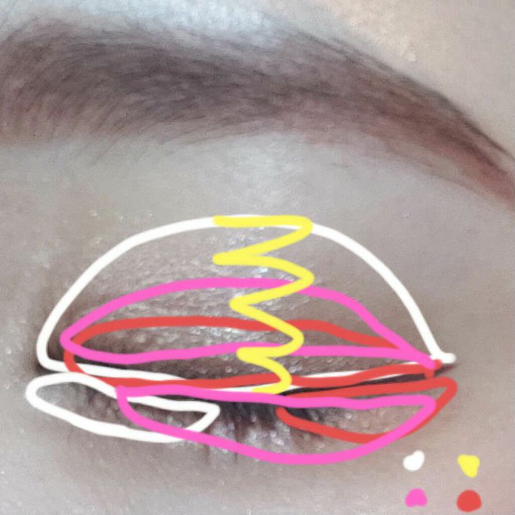 グランバルの白ラメ最初にぬったらピンクラメがちらちらしてるのめだってとってもかわいかった🥺 イエローのアイシャドウとブルーのラインがとってもかわいい! 青すぎないのがとてもよい🥺