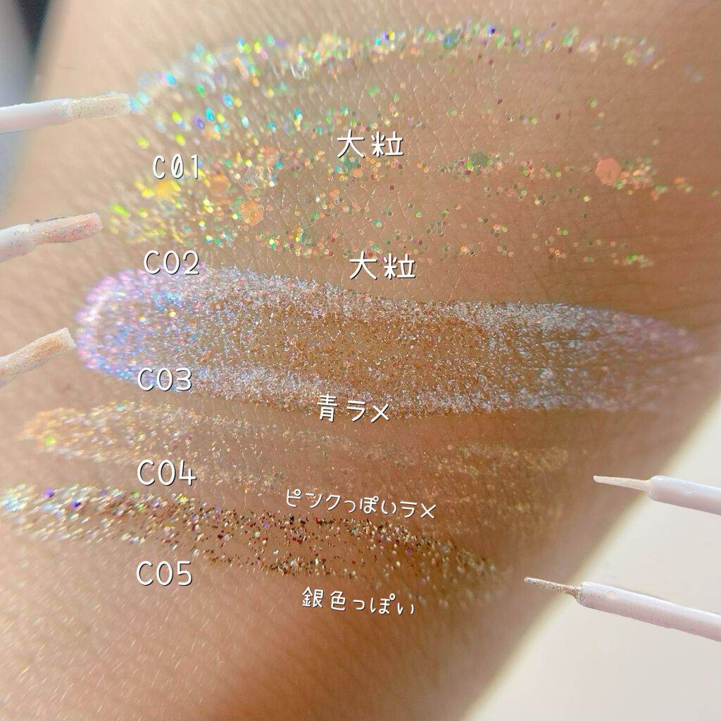 | リキッドアイシャドウランキング第2位 | 中に入っている偏光オーロララメの大きさがまた絶妙で、そのまま塗って使っても良いんだけど瞼にラメを乗せる感じで使ってもキラキラで可愛いよ | 詳細を見る | |