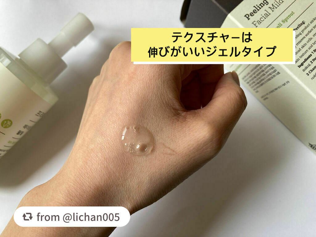 - 古い角質や毛穴皮脂をやさしく取り除き、肌のバリアを保護し、なめらかな肌に整えるピーリングジェル