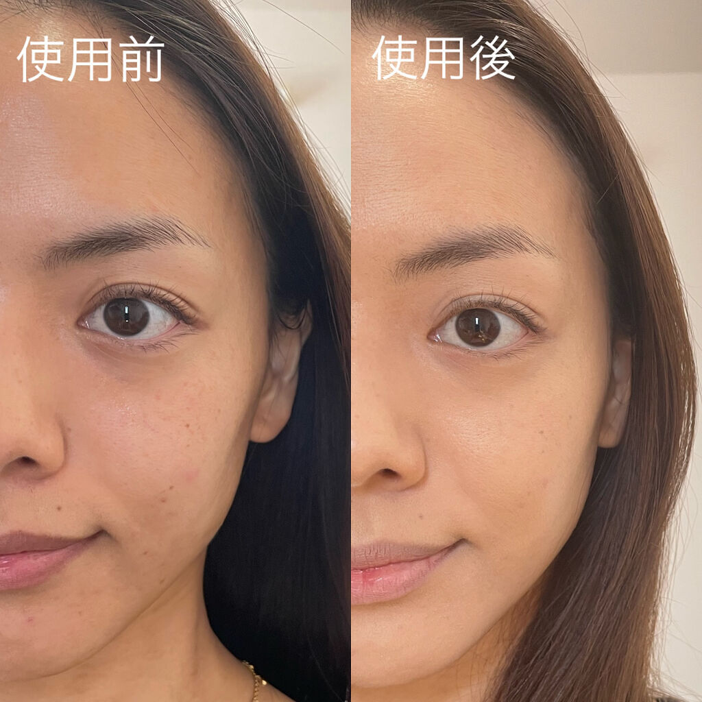 プラセンタエキスやローヤルゼリーなどが配合されていて、メイクしながらスキンケアが叶うんです✨ 成分表を見てみたら、ほかにもナイアシンアミドやダマスクバラ花エキスなどの美容液成分が72.9%も配合されていて、まるでパックをしているような潤いのあるツヤ肌へ導いてくれます。 高密着パウダー配合で崩れにくく、また酸化しにくいブライトアップオイルが使われているので、時間が経ってもくすみにくいのが👍 一日中、透明感のあるモッチリうるツヤ肌がキープできました。 ナチュラルなツヤ肌に仕上げたい方、乾燥が気になる方、朝のメイク時間を短縮したい方にもオススメです。